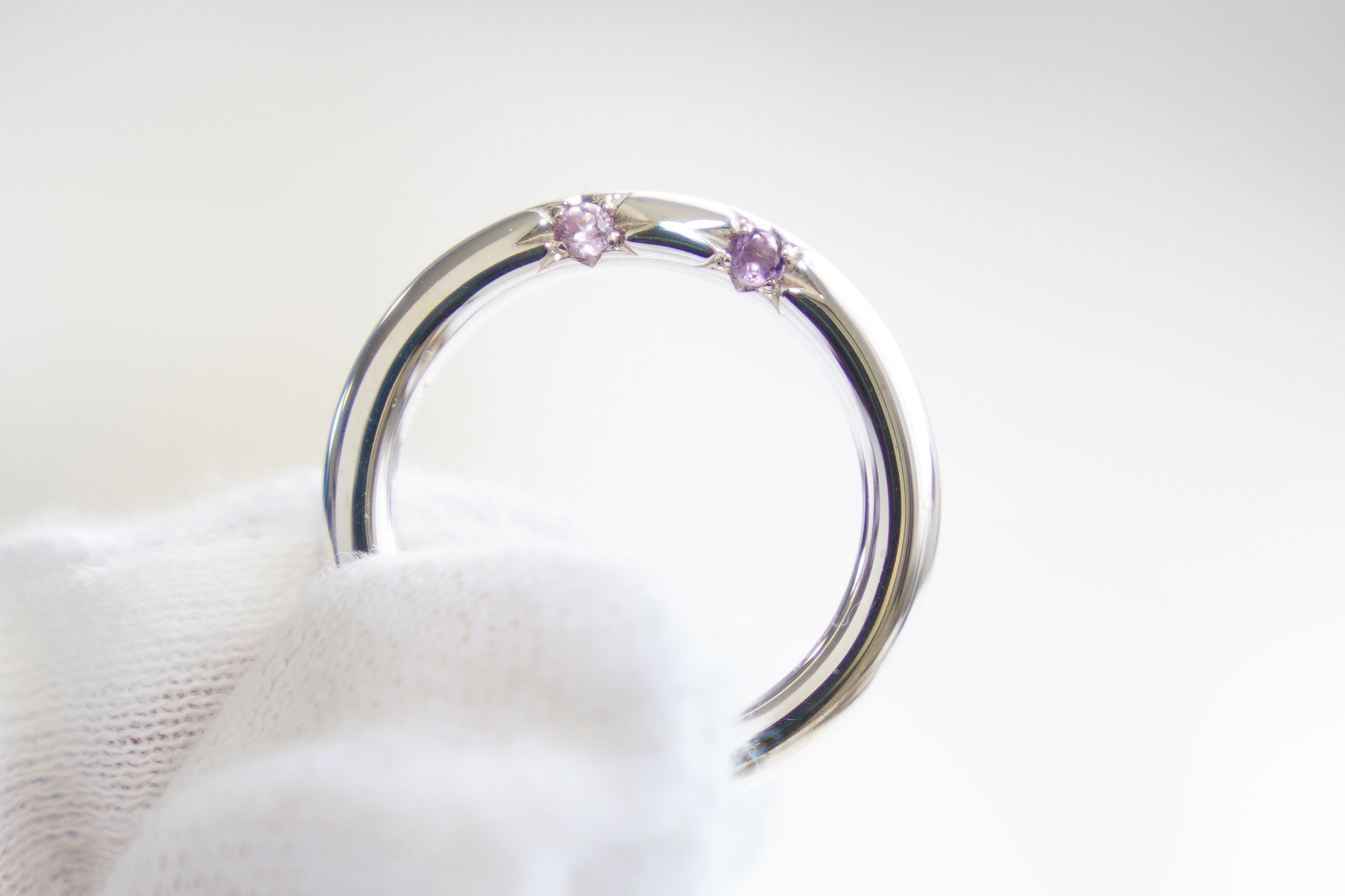 従来は3.5mmの太め幅と2mmの細め幅で側面埋め込み石リングの発売をしておりましたが、お客様からのご要望もあり、その中間の3mm幅。もっとも石が綺麗に見える商品開発を行いました。