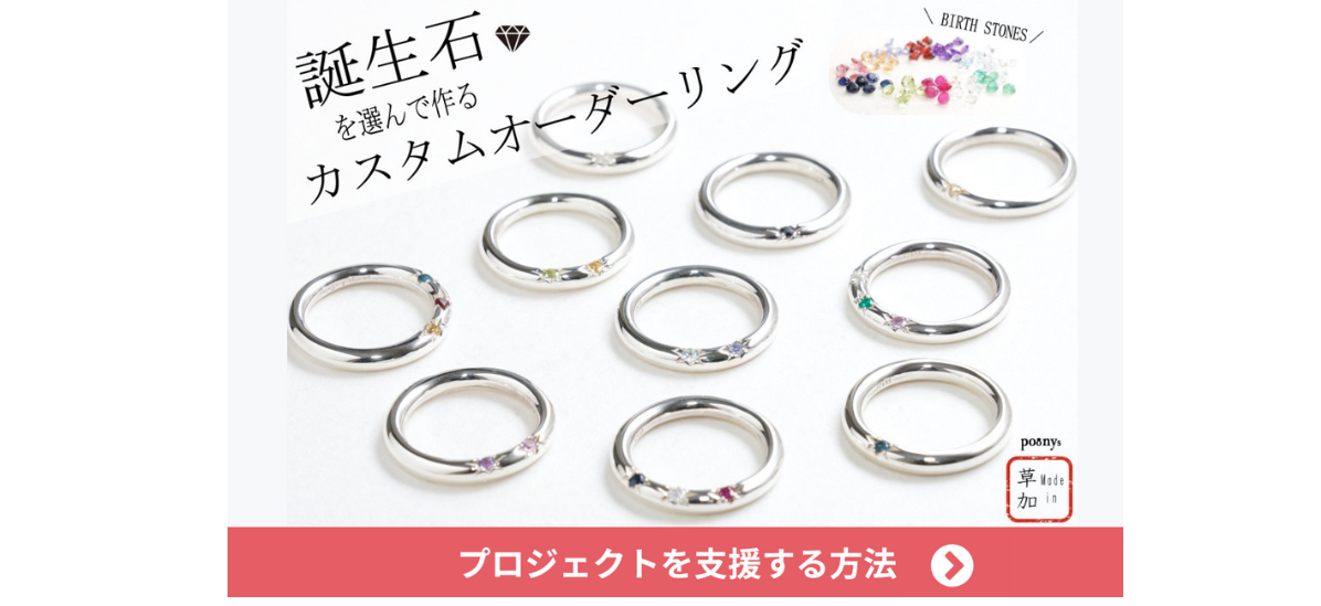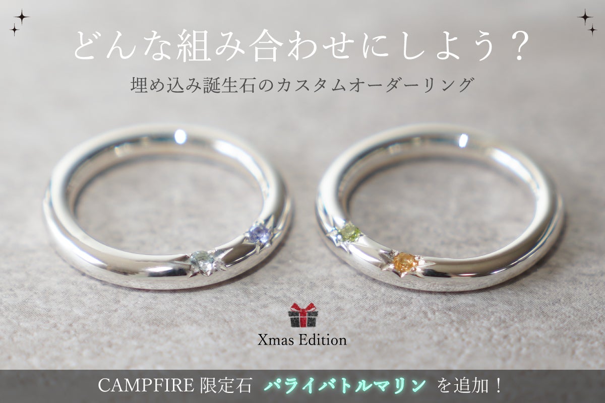 リターンついては、土台と誕生石を複数指定していただくことで一つのカスタムリングが完成いたします。少々複雑にはなりますが、下記の順でご支援いただけると嬉しいです。