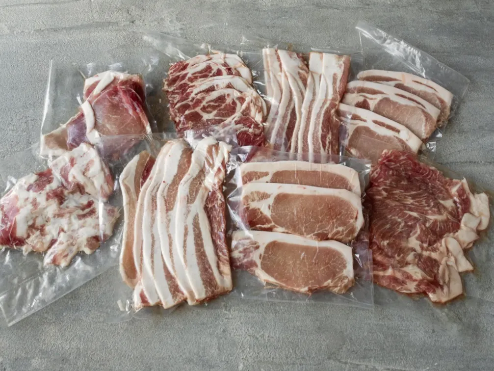 いずれもご家族で満足いただけるボリューム感。冷凍便でお届けしますので、そのまま冷凍庫で保管すれば消費期限は安心の1年間。焼肉やBBQで楽しんでいただく以外に、さまざまな料理に活用いただいて、たとえば素敵な朝食や、ポークソテーや豚丼、生姜焼きなど様々なお料理に活用いただけます。