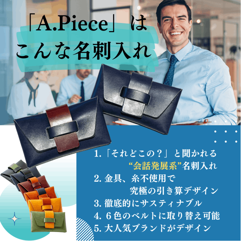 人は日々変わっていくもの。あなたと一緒に歩んでいく名刺ケースも、ご自身でカラーのカスタマイズができるものを選びませんか。「A.Piece」は毎日の生活の中で、あなたと一緒に歩んでいく名刺ケースです。