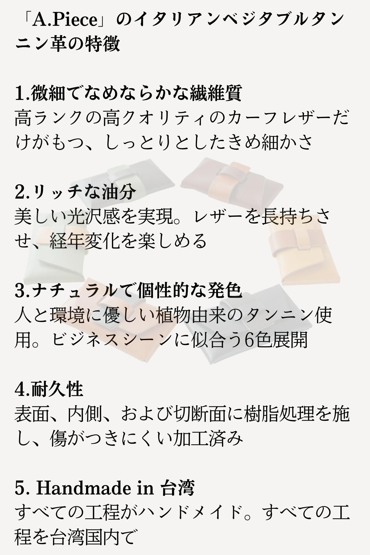 ファッション、シーン、気分に合わせて、ベルトの色を変えるなんて、なんて気が利いているのでしょう。最上級のベジタブル牛革の光沢感、レザーのエイジングを楽しめるA.Piece、来年のビジネスパートナーとしておすすめです!