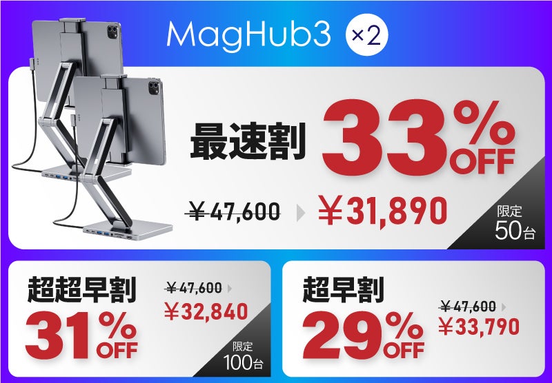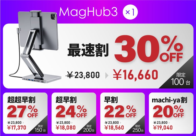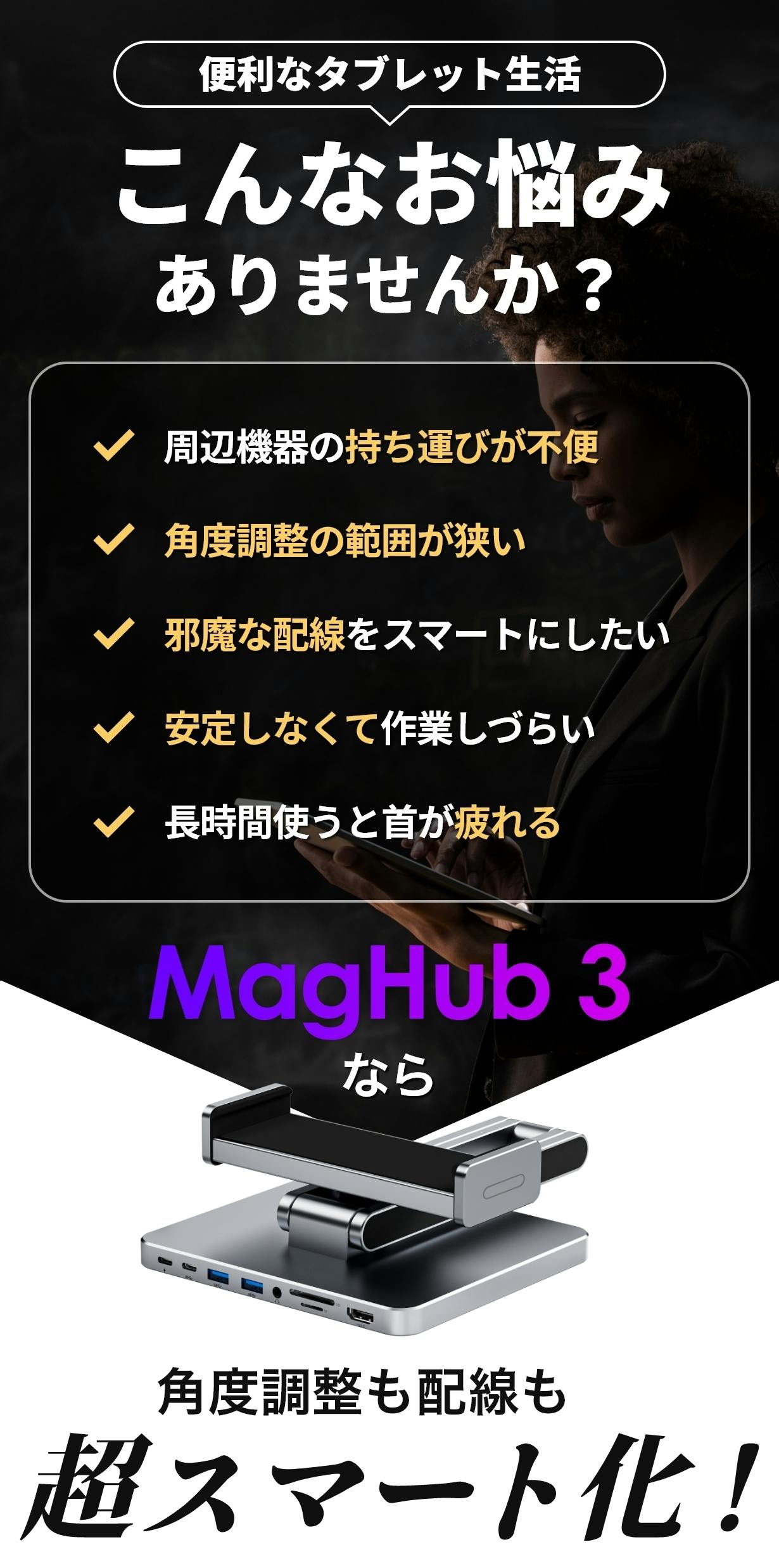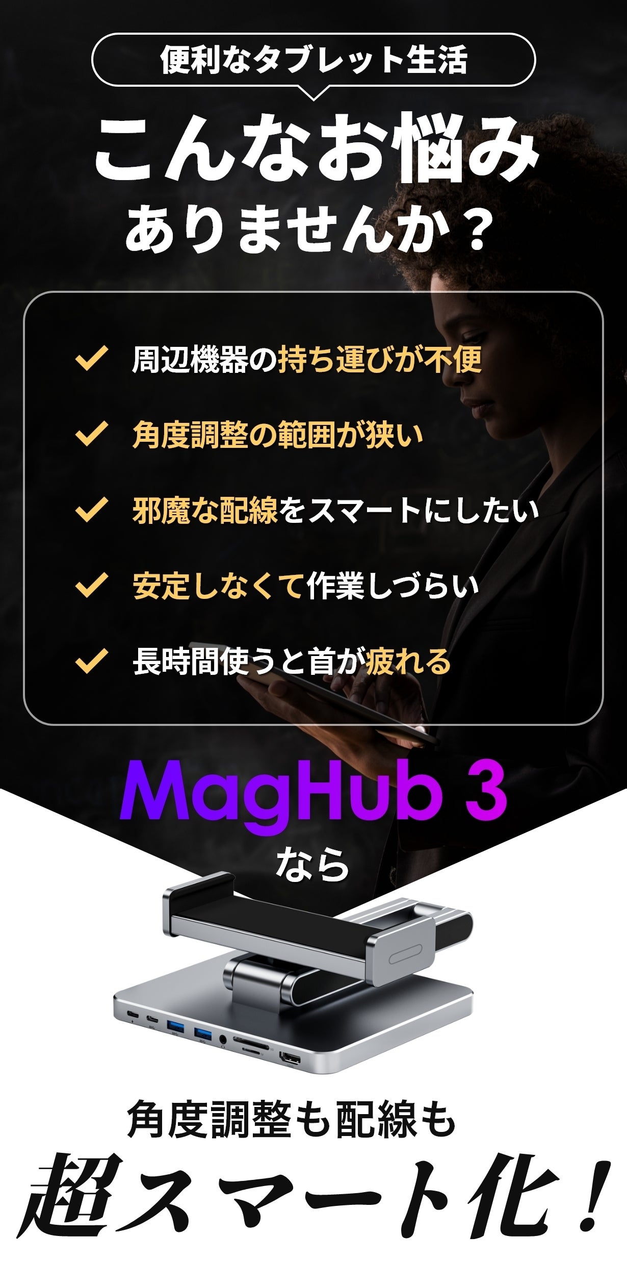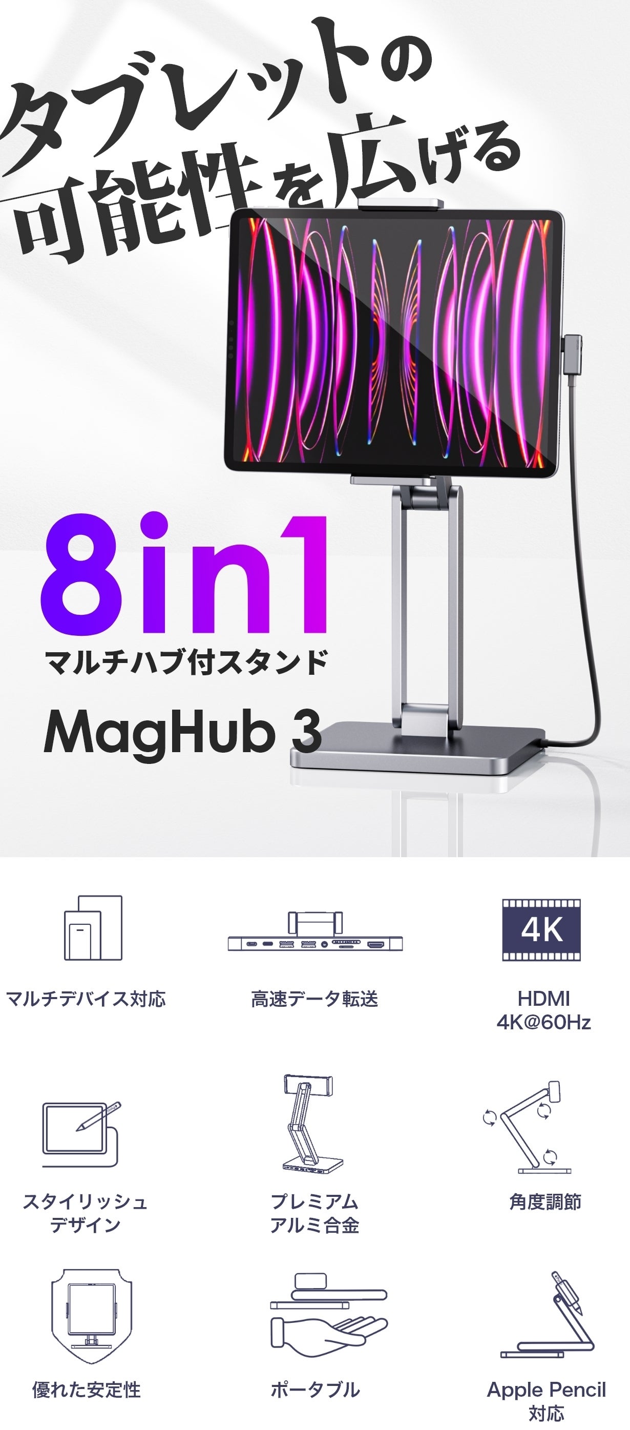 テクノロジーの進化が、私たちの生活や働き方、遊び方をどれほど豊かに変え得るかを深く理解しています。そして、それは単に日常をスムーズにするだけではなく、未知の可能性を拓くキーでもあります。MagHub 3の日本市場への導入は、まさにその願いを形にしたもの。このスタンドを使えば、タブレットの持つ無限の可能性をもっと深く、もっと広く探求できるでしょう。私たちと共に、新たな体験の世界へ足を踏み入れてください。