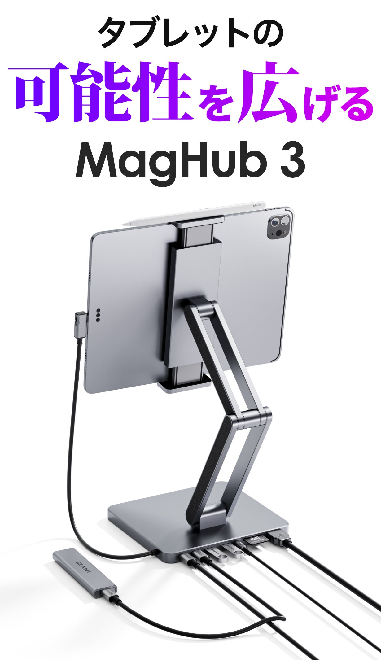 私たちの最新の商品、MagHub 3はその一例です。究極のiPadスタンドとして設計され、同時にUSB-Cハブとしても機能します。これにより、タブレットの使用体験が大幅に向上し、さまざまなデバイスと周辺機器の接続が容易になります。INVZIは、ユーザーが求めている高品質で革新的な製品を提供し続けることを誇りに思っています。