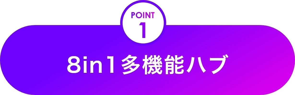 8in1ハブが付属し、PD充電ポートを含む各種接続ポートが組み込まれています。このため、多種多様なデバイスやアクセサリーとの接続が楽々。従来よりもさらにシームレスな接続体験が実現し、作業の効率アップやエンターテインメントの拡張が期待できます。