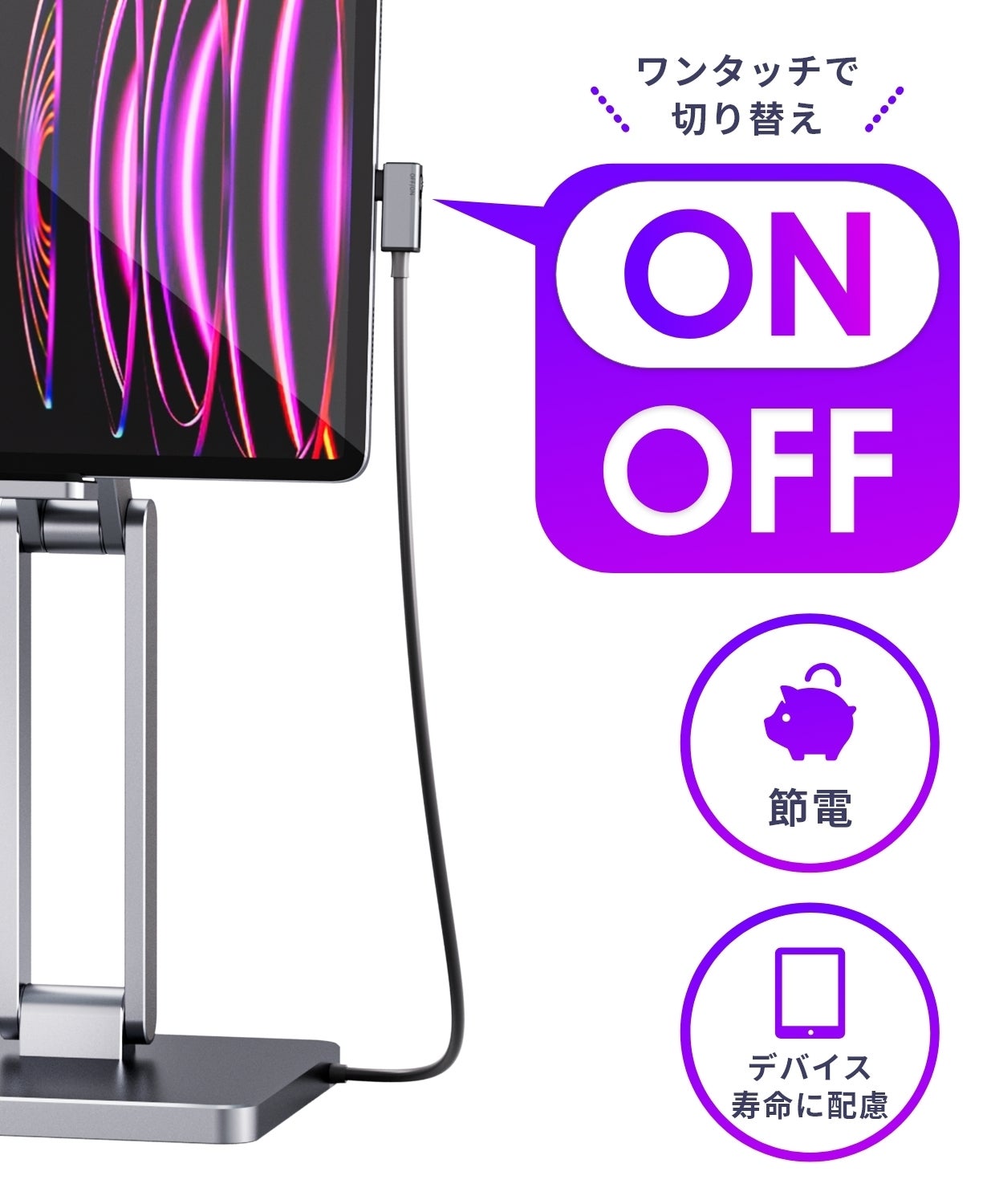 オン/オフスイッチ搭載で、使用時以外はエネルギー節約。デバイスの長寿命もサポートします。