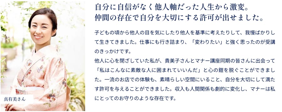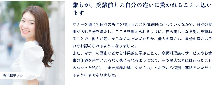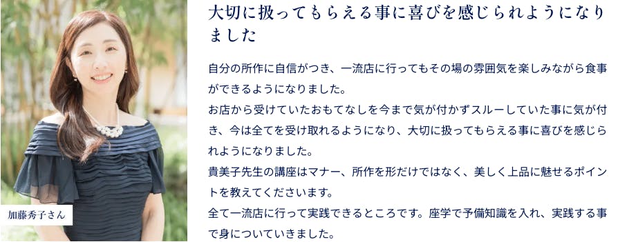 Lei美人塾の受講生からは一流のふるまいを学んだことで、
