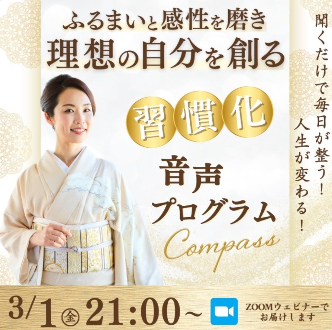 2024/02/29 18:00みなさまこんにちは!末永貴美子です。明日、3/1 21:00から特別セミナーを開催いたします!公式LINEでお知らせしていたのですが、想像を超える反響をいただいております。このセミナーのキッカケは、初の著書【ふだんのふるまい帖】の出版で、この出版を応援してくださった皆様にもぜひご参加いただきたいと思いまして、この度お知らせさせていただきました。 ✧・・・━━━━━━━・・・✧ \無料招待/ ふるまいと感性を磨き 理想の自分を創る 特別セミナー ✧・・・━━━━━━━・・・✧3/1(金) 21:00スタートです。 スライド資料を使い、セミナー形式で開催させていただきます。視聴リンクは当日この特設LINEから送るので、登録してお待ちください!(※お顔は映りませんので、リラックスした格好でご参加くださいませ。)ライブでよりエネルギー高くお伝えしたいので、ぜひリアルタイムでご参加くださいね!【特設LINEはこちらから】 https://lstep.app/rjbevIh末永貴美子 もっと見る