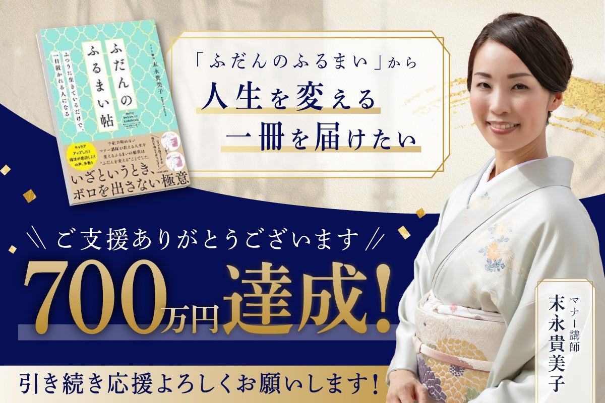 なんと、 初の書籍「ふだんのふるまい帖~ふつうに生きているだけで、一目置かれる人になる~」 出版記念クラウドファンディング700万円達成いたしました!