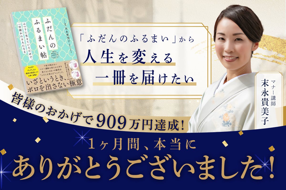 この度は、初の書籍 『ふだんのふるまい帖~ふつうに生きているだけで、一目置かれる人になる~』 の出版記念クラウドファンディングのご支援、応援いただきまして誠にありがとうございました。