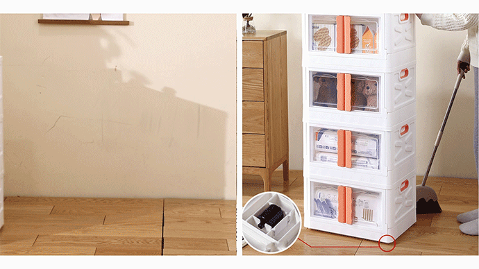 A5: 「YounaI」の下部に滑車があり、簡単に押すことができます。ボックス内が物でいっぱいになっても持ち運びが簡単です。また、両側にハンドルがあり、簡単に持ち上げて運ぶことができます。