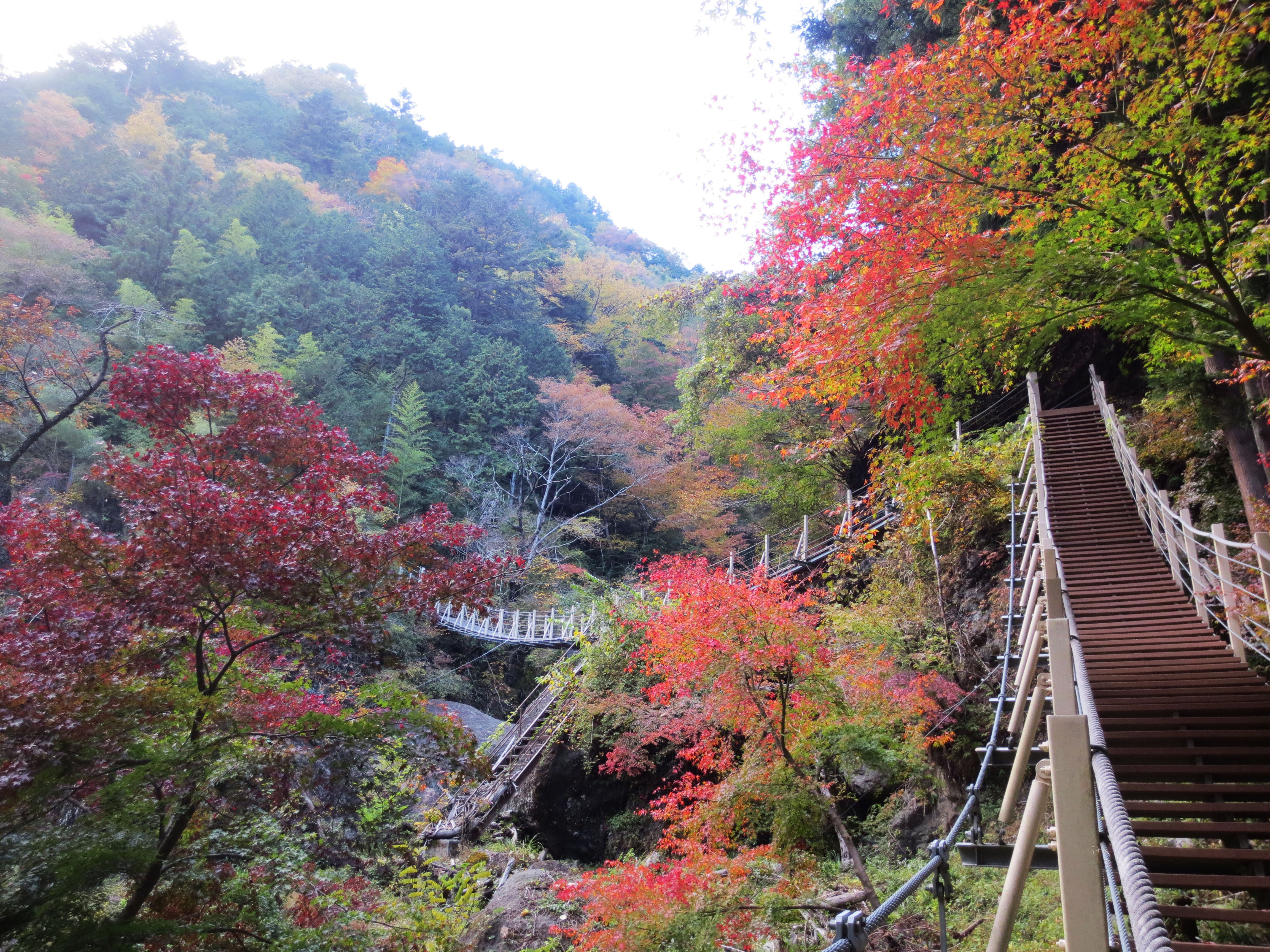 どの旅程も翌日にちょうど紅葉が美しい大柳川渓谷にご案内します。マイナスイオンに癒やされてください。
