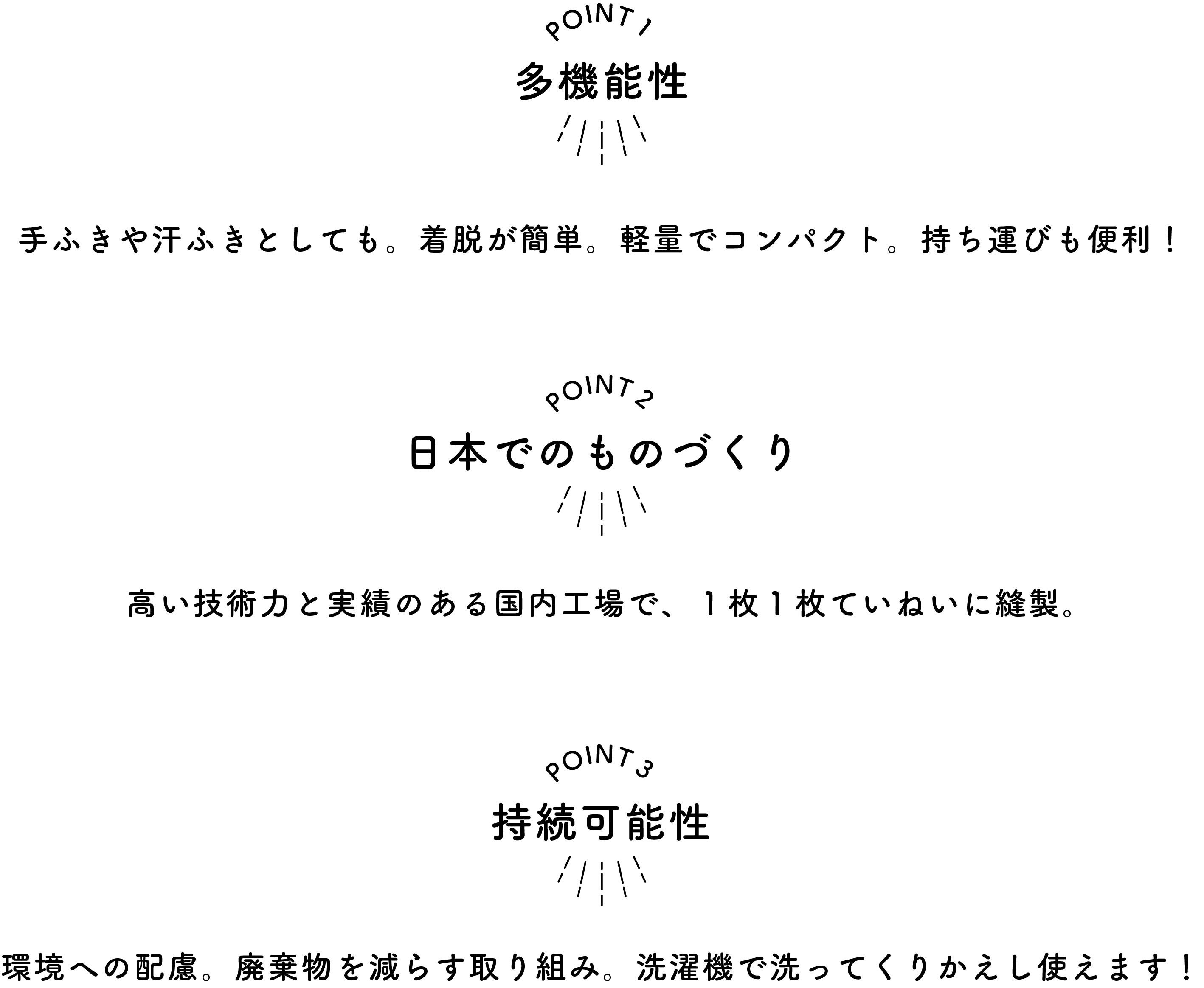 環境への配慮。不要な装飾や工程を省いたシンプルなデザインを追求。 繰り返し洗って使える、できるだけハギレを出さないなど、廃棄物を減らす取り組みをしています。