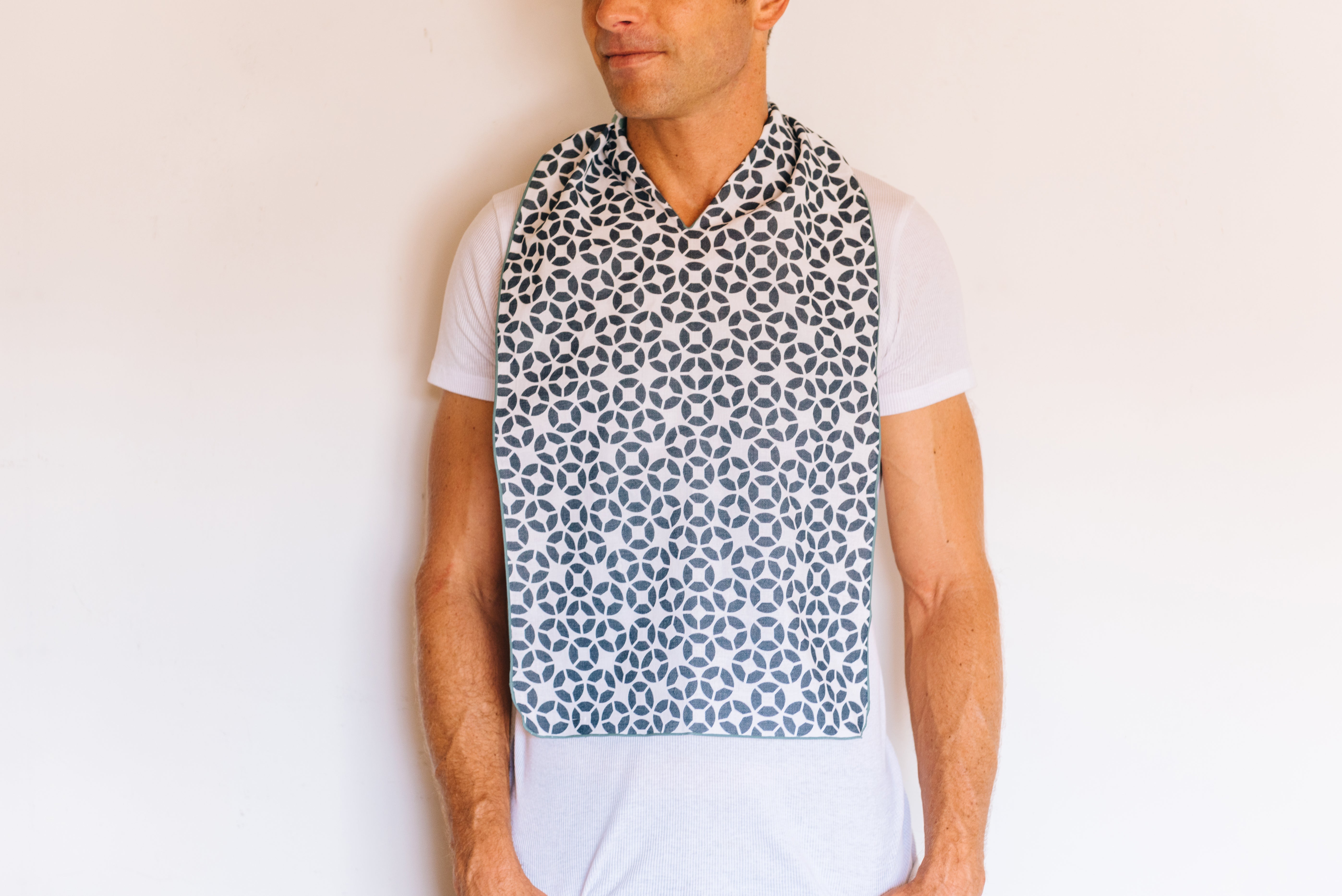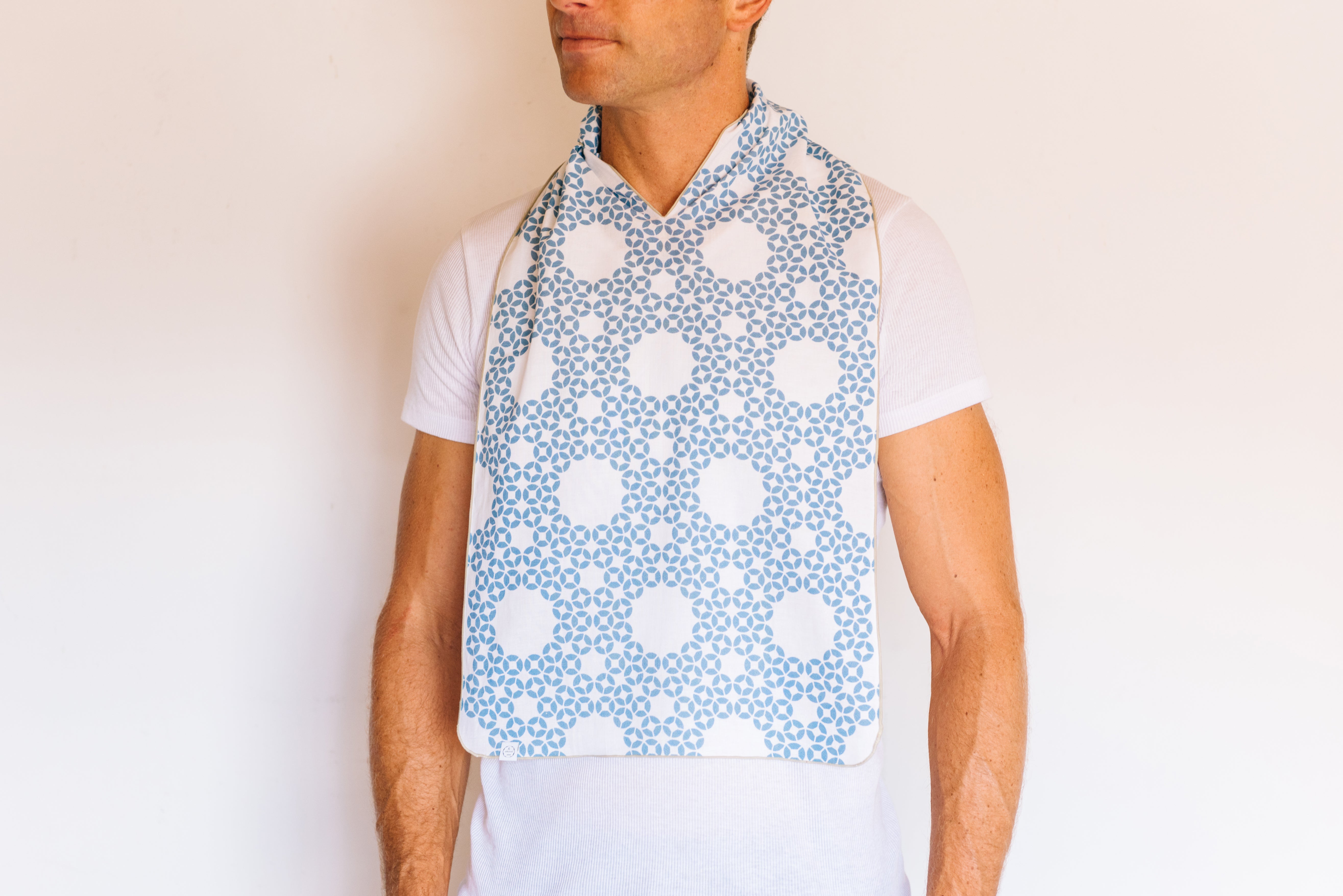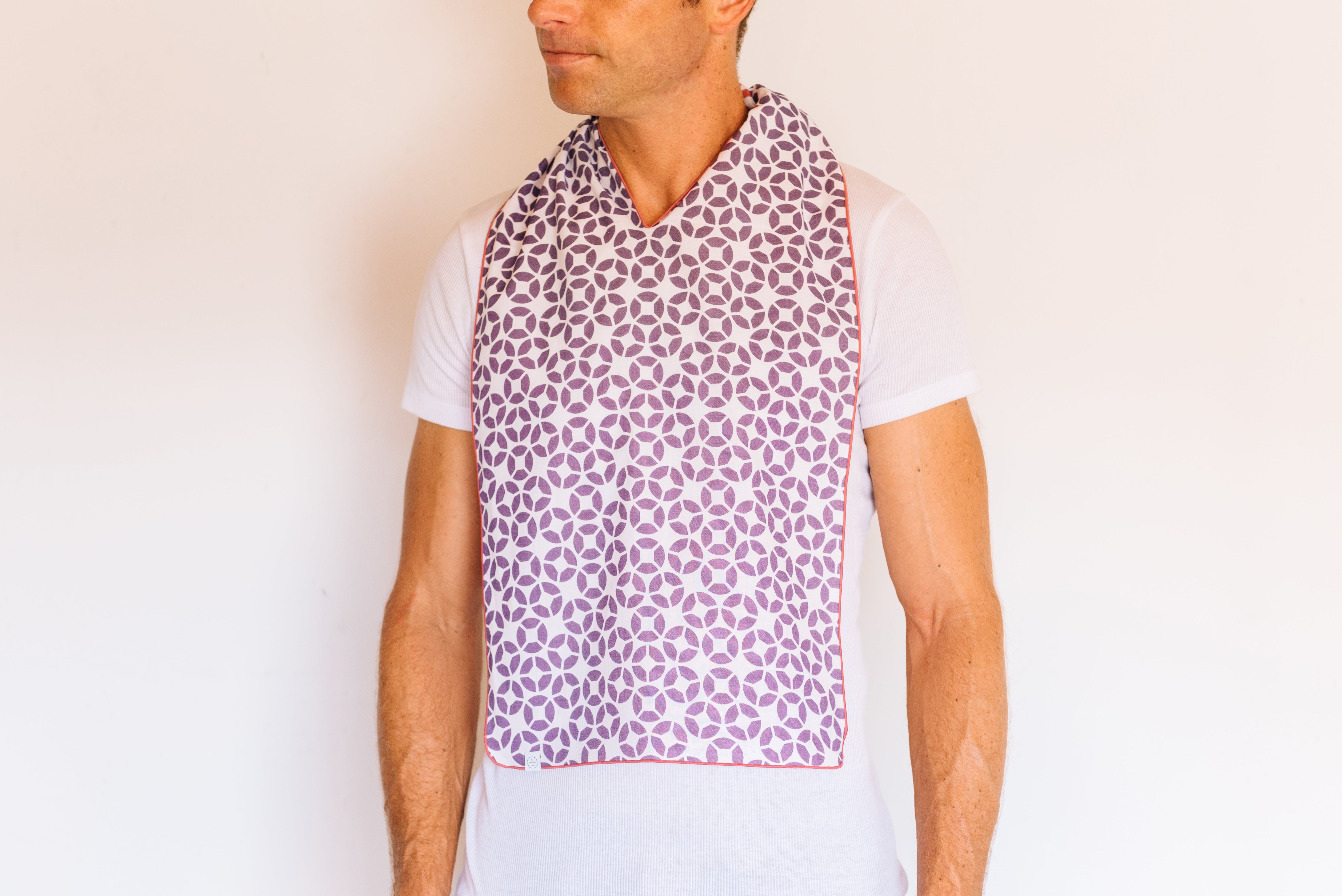 A:普段はハンカチとしてお持ち頂けます。ほかにもメイクの際の汚れ防止やワークアウトの際の汗ふき、三角巾代わりとして様々なシーンでご利用頂けます。