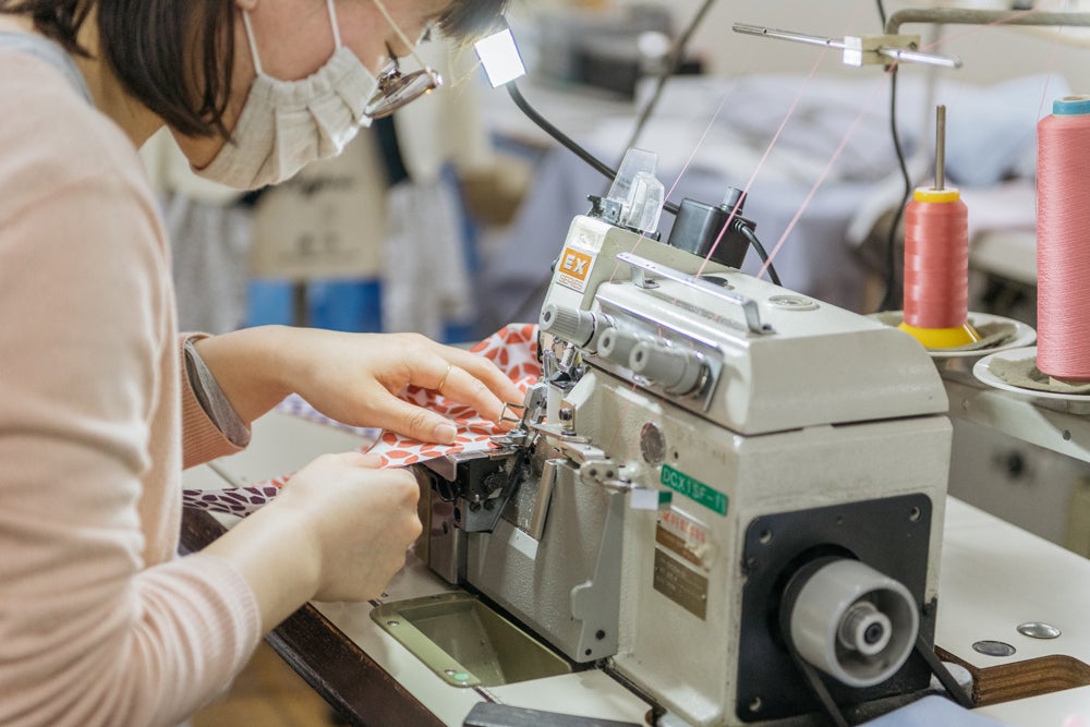 高い技術力と実績のある国内工場で、1枚1枚ていねいに縫製。伝統産業品の活用や伝統技術を次世代へつなぐ取り組みもしています。
