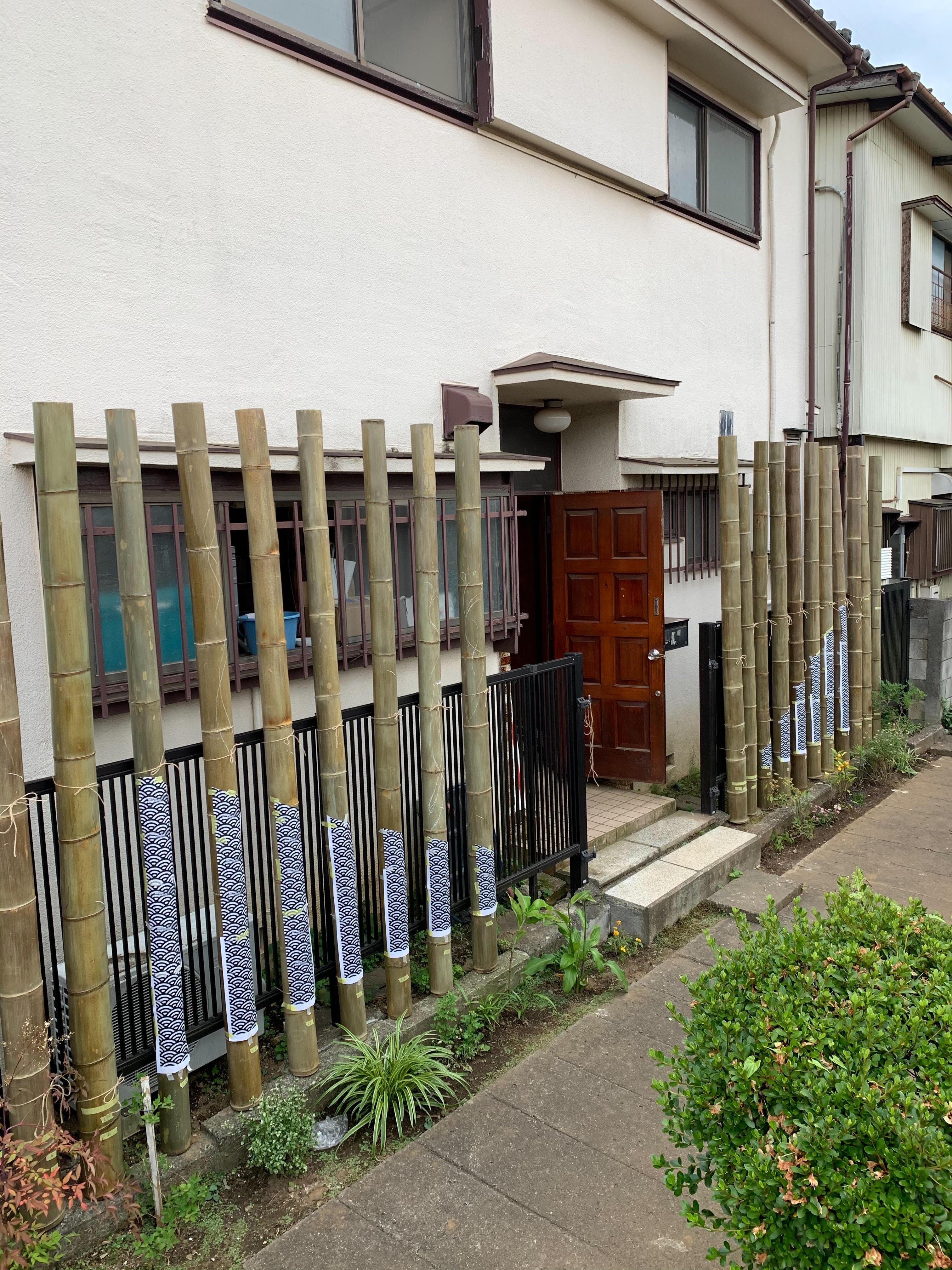 完成時は 2.6 mの竹あかりが 24 本並びます