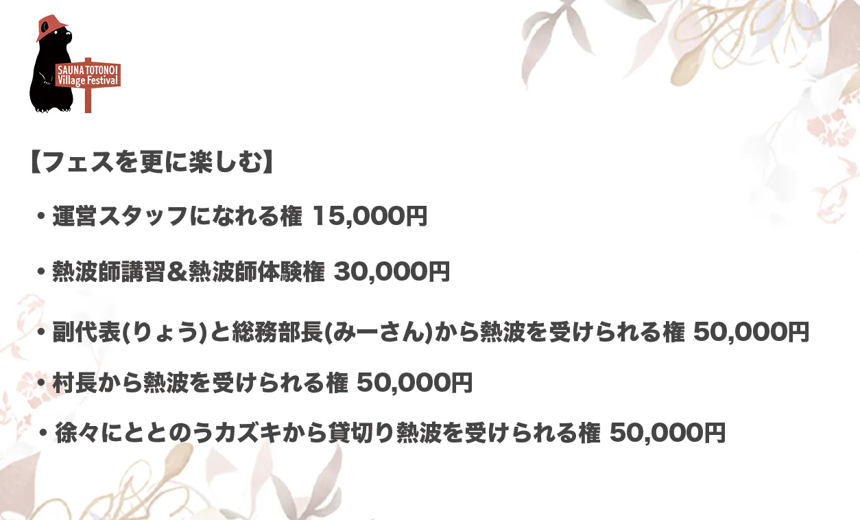 SAUNA TOTONOI Village Festival実行委員会 書記兼会計