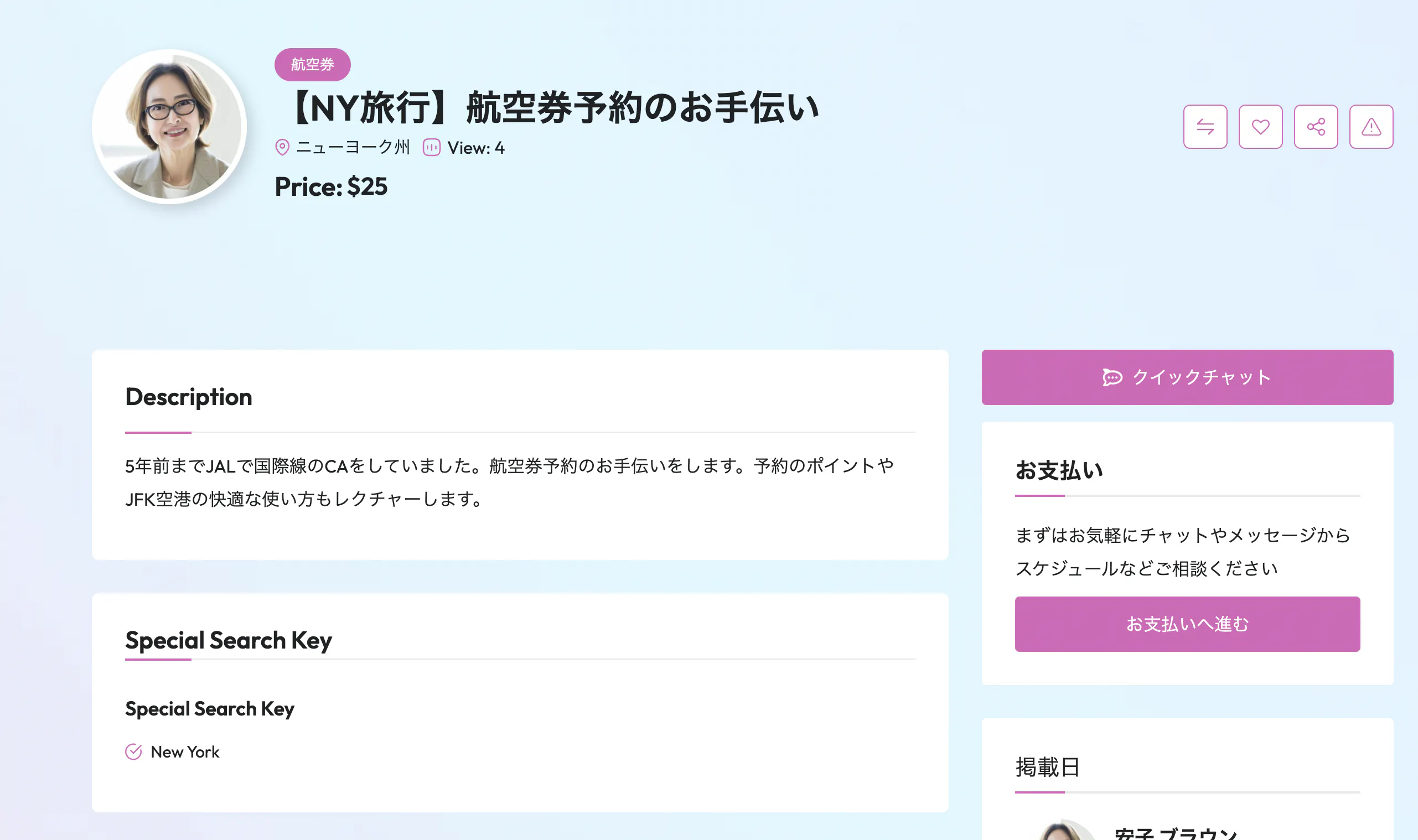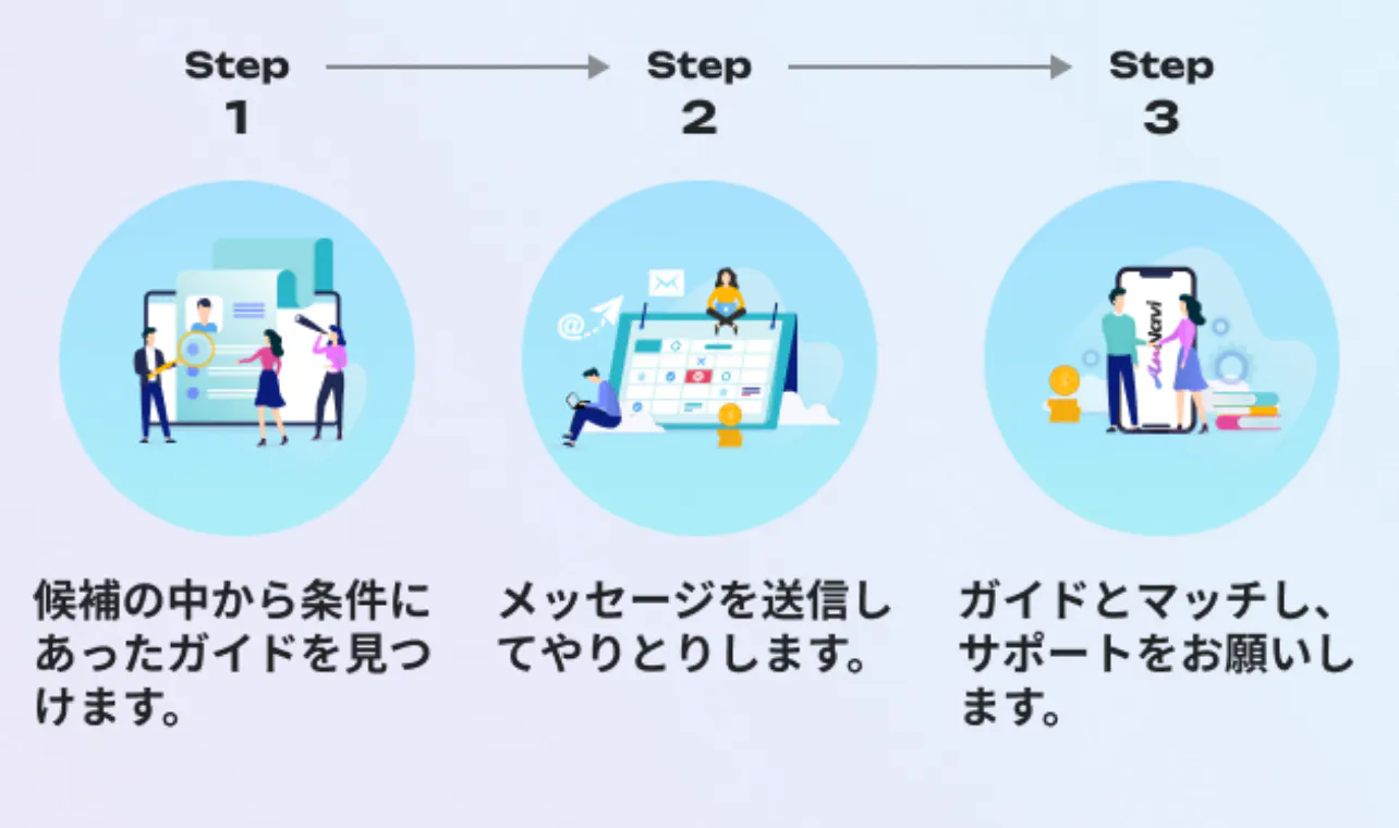 依頼前にガイドと直接連絡が取ることができ、事前の値段交渉なども可能で、チャットを使ってスムーズにコミュニケーションを取ることが可能です