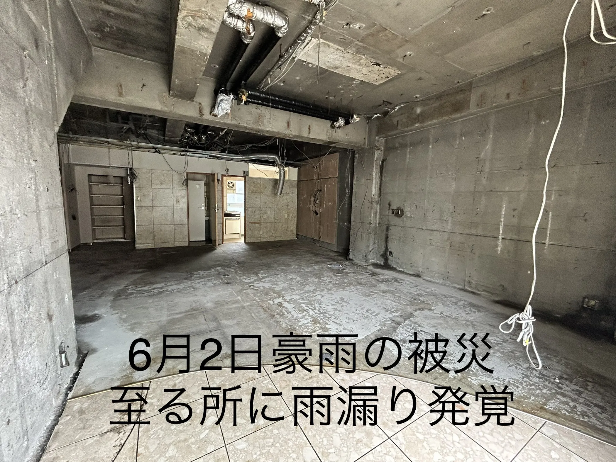 6月 旧店舗解体改修工事開始の予定が、6月2日豪雨による雨漏り発生でストップ