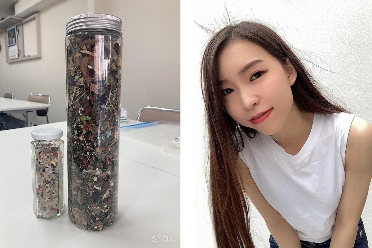 ボランティアで集まる方と川の掃除をし、そこに集まるマイクロプラの一部をアクセサリーに使用しています。