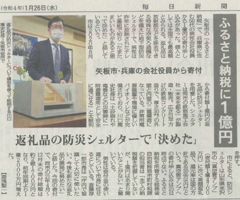 建設事業のノウハウも活かして、防災シェルター事業も行っている会社です。