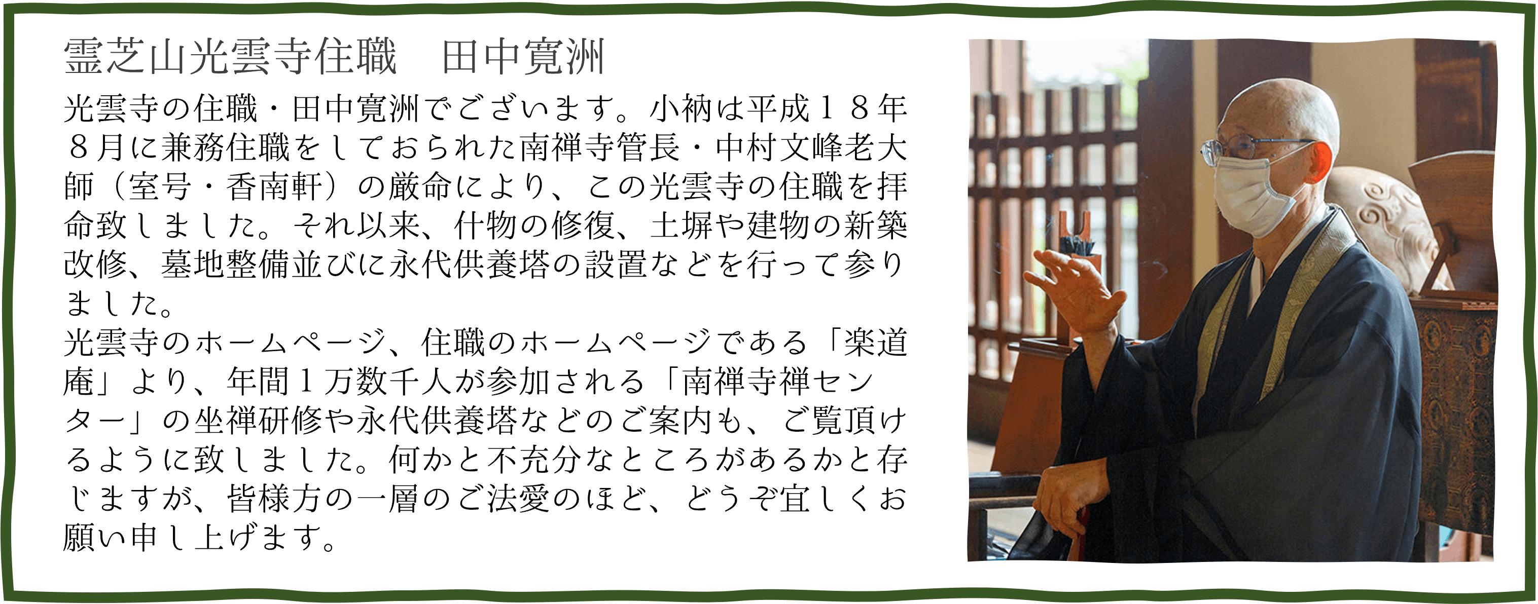 田中寛洲住職と坐禅風景