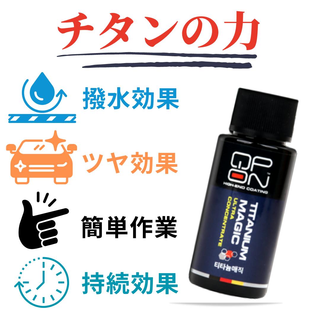 QPON社のチタンマジックはドイツ生まれ。本場では船舶や軽飛行機などにも使用さるタフな環境にも適応するチタン分子とケイ素配合のコーティング剤です。