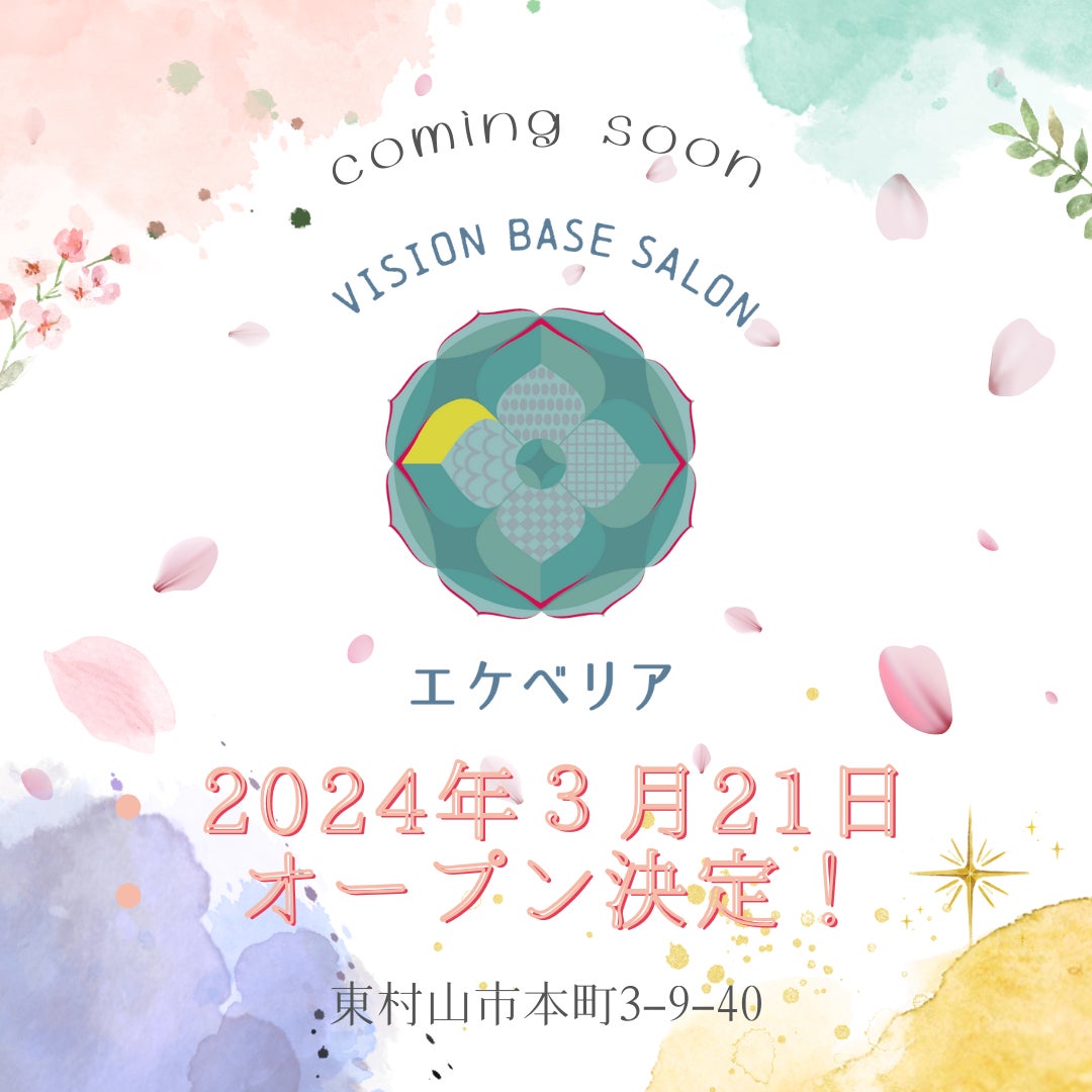 こんにちは!エケベリアの店主、日美子です。やっと、やっと、準備が整ってまいりましたので、オープンする日を決めました!!3月21日木曜日です!10時から18時で営業する予定です。ただ、さまざまなものを引き続き整えながら営業していき、少しずつ完成していくお店という感じでやっていきますので、21日は完全に全てのメニューが揃っているわけではなさそうです…(頑張って今整えておりますが!)また少しずつ進化していくエケベリアを楽しみにしてくださると嬉しいです!今日は取り急ぎ、エケベリア再始動!Vision base SALON エケベリアのオープン日のお知らせでした!!引き続き、エケベリアをよろしくお願いいたします!Vision base SALON エケベリア店長ひみこ★エケベリアは、下記の皆様に支えられております★イラストレーターsora様/YOSHIKUNI様/Yukihira-nabe様 他東村山駅東口から徒歩7分