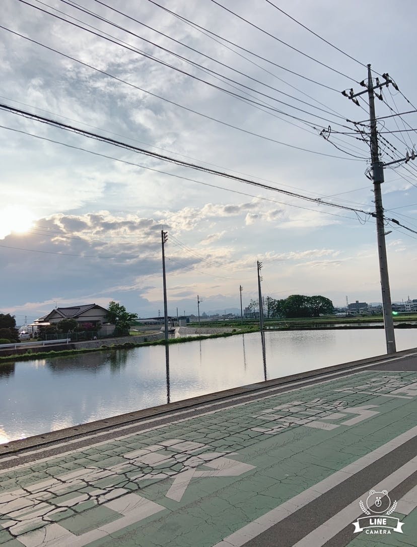 自宅前の風景(特に何もありませんが、田植え前…田に水がはる時期がとても気持ちいいです!また、春には少し先に桜が…そして遠くの方には新幹線が見えるような場所です。。)