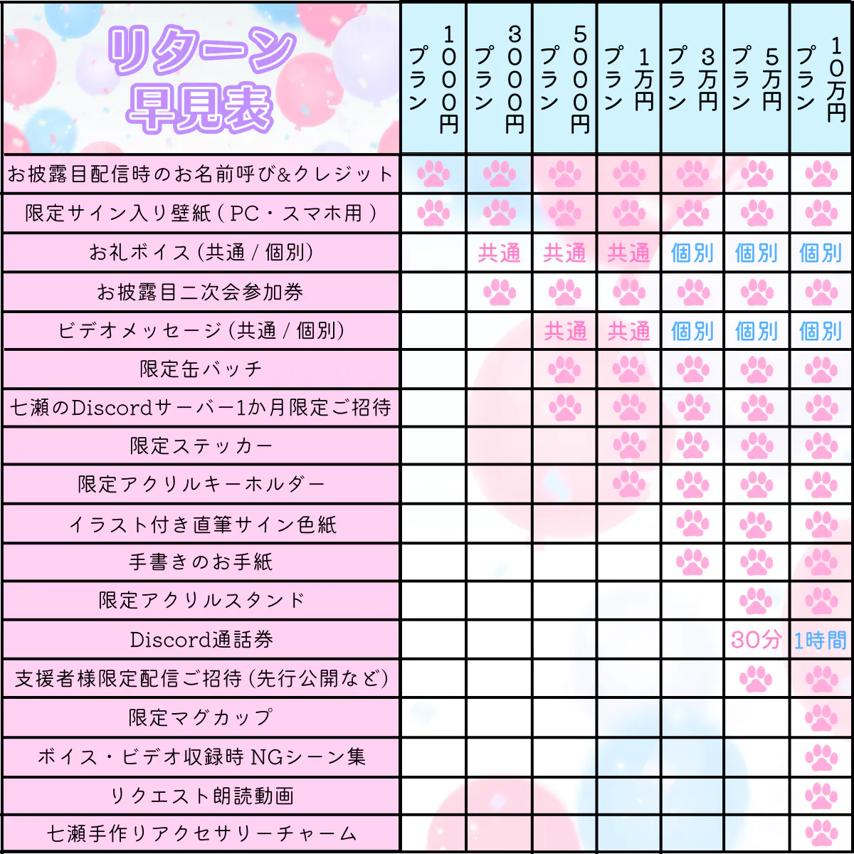 見返りは要らない!ただななせを応援したい!!という男前な方に向けたプランです!