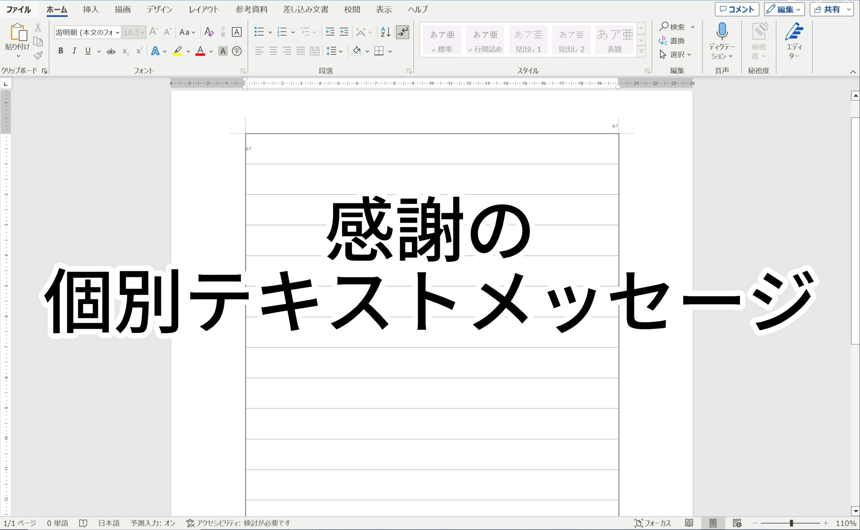 ご支援いただいた皆様に、感謝のお手紙をWordで作成し、PDFファイルの形で送付させていただきます。なお、こちらの文章はご支援していただいた皆様共通となっております。あらかじめご了承ください。