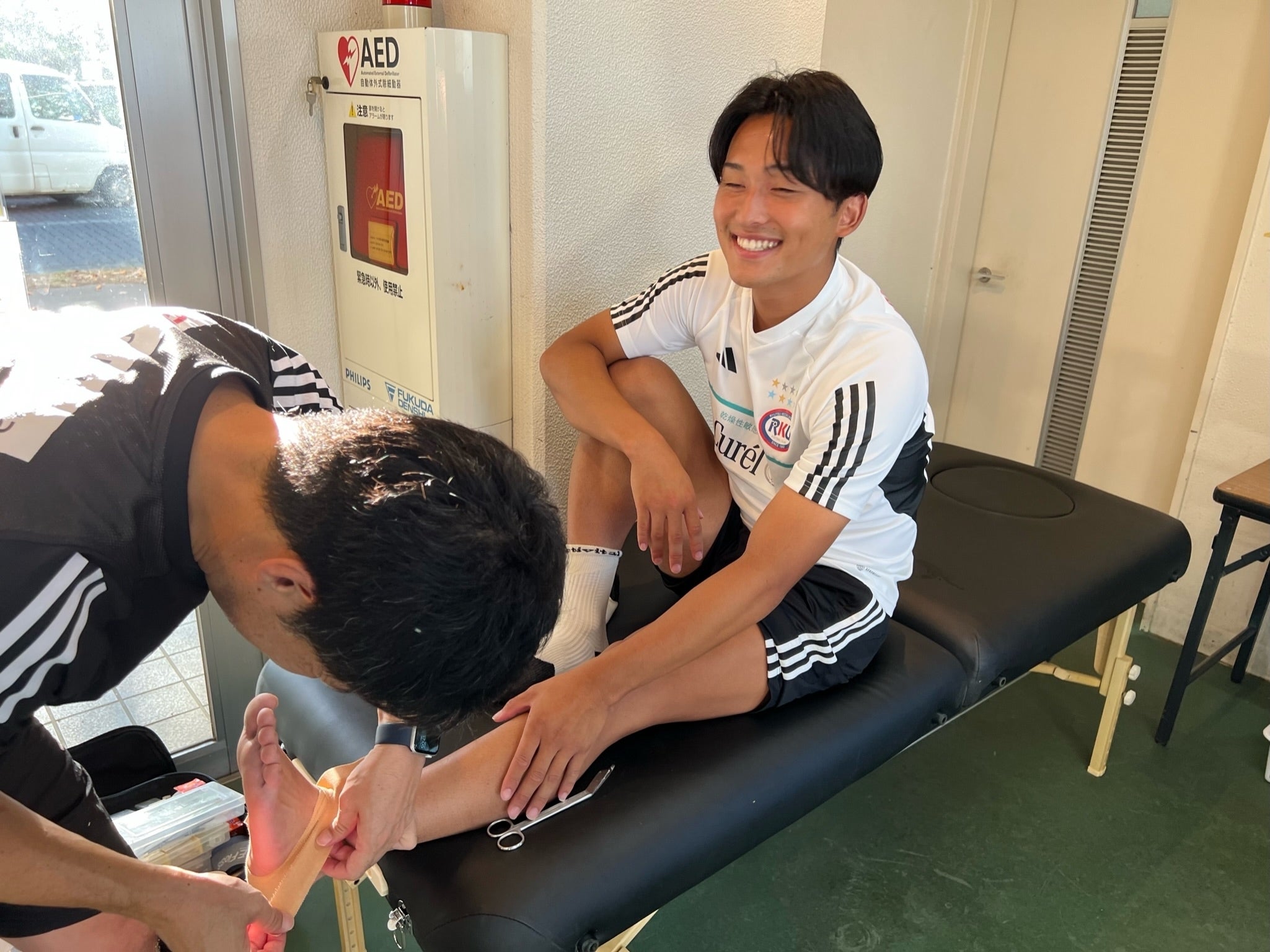 自分も学生時代にリハビリやトレーニングをしてもらいました!ピッチ外でのトレーニングやコンディショニングがパフォーマンスに大きく影響することを実感し、それが土台となって今があると思っています。僕と同じような体験ができるように、若い選手のパフォーマンスアップのために協力お願いします。