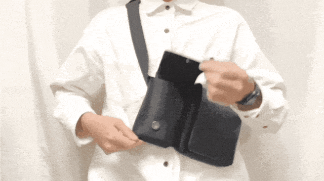 見た目よりも多くのモノを収納できます。長財布も入るサイズです。*長財布は大きさや厚みによって収納できない場合もございます。