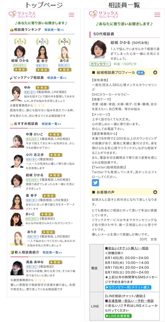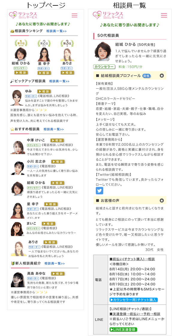2022年11月に、恋愛、心の健康、人間関係の悩みを電話で解決する「リラックスサービス」を提供開始しました。