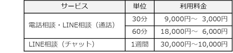 相談員(カウンセラー・サポーター)ごとの料金設定