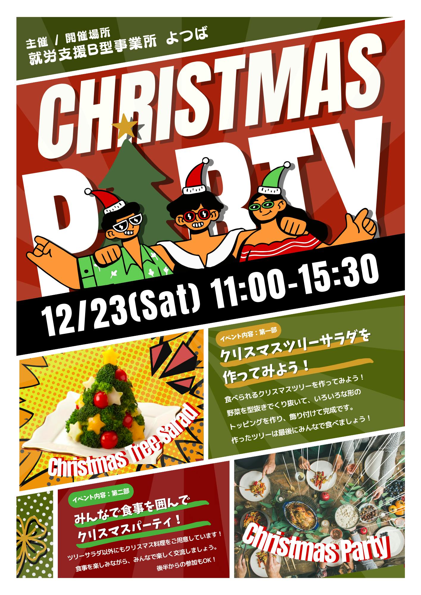 12/16(土)のHICARUの日に引き続き、翌週23日には就労支援施設B型のよつばさんと一緒に、就労体験もできるクリスマスパーティを開催します!