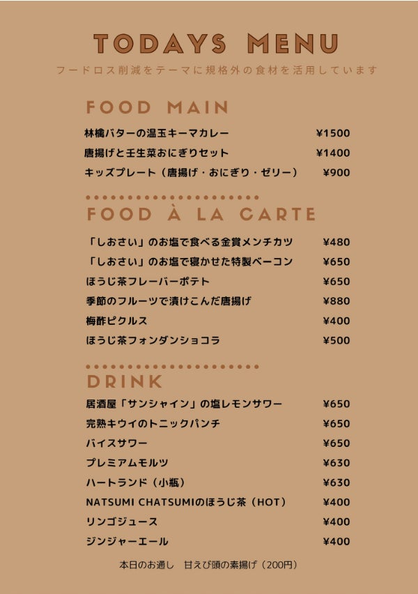 メニューも全てオリジナル。(よく間に合ったよなあ・・・)