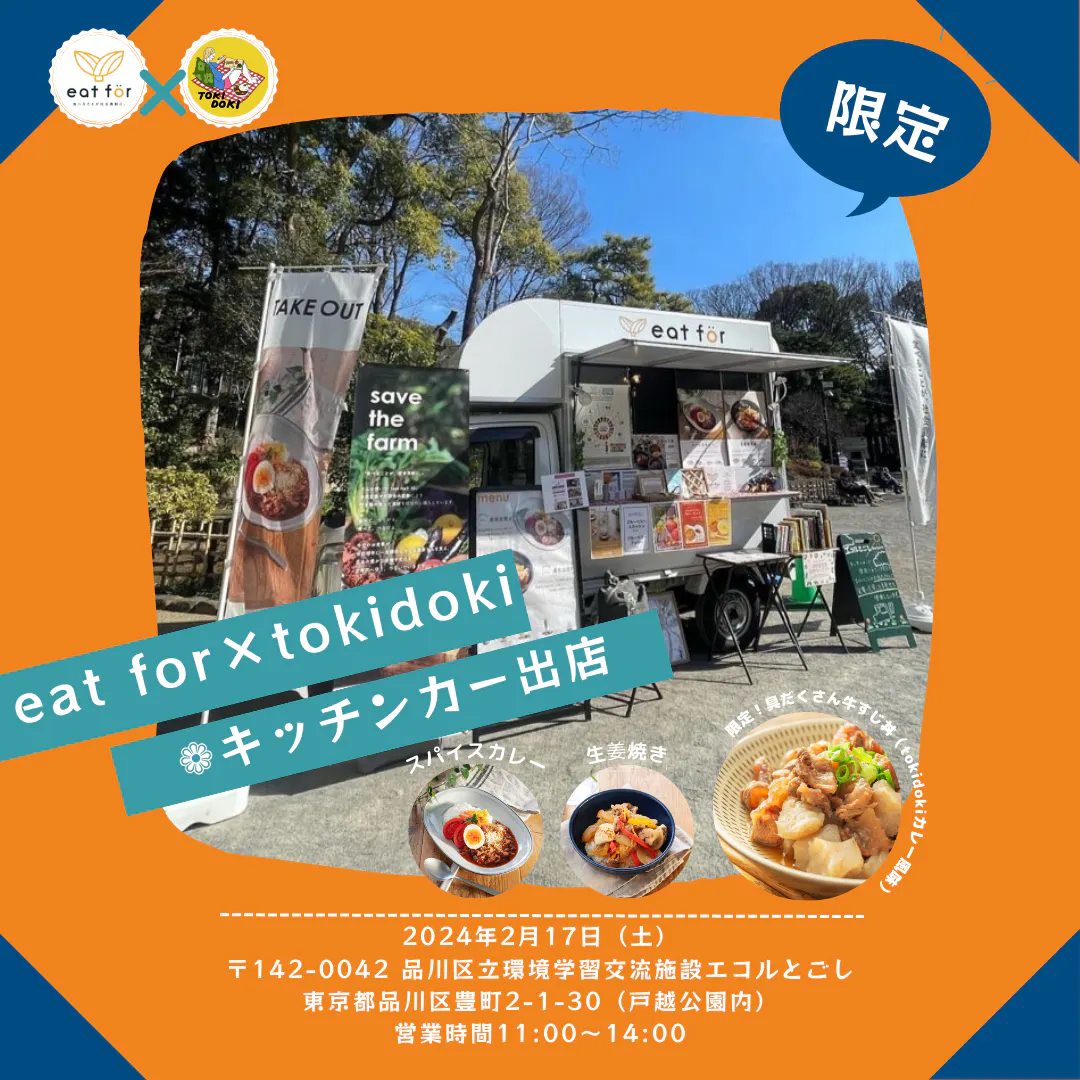 フードレスキュ―と農家支援の先駆者として都内でキッチンカー運営をしているeat forさんでtokidokiのオリジナルスペシャルメニューを展開させて頂きます(^^)/