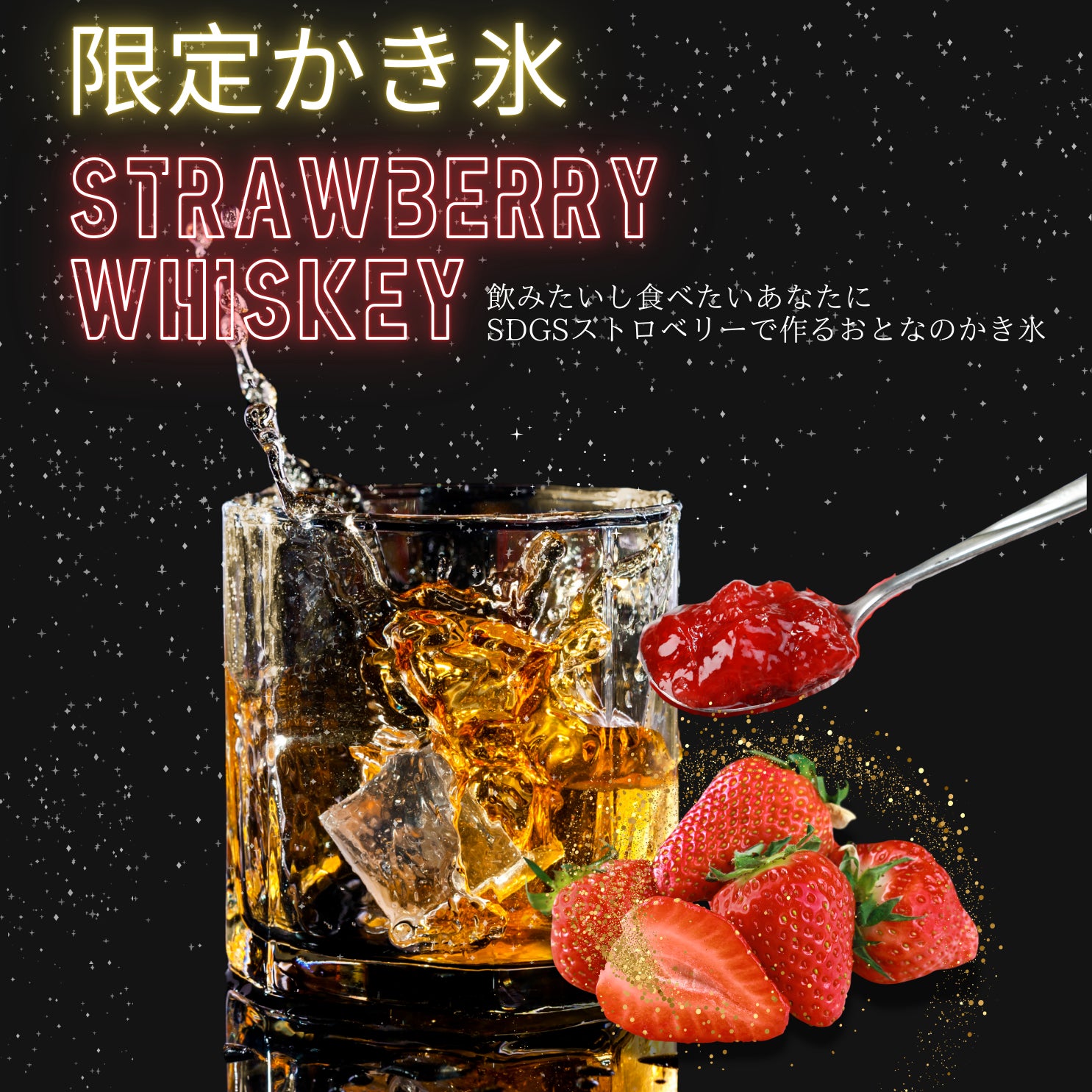 私たちの活動はメニューの形では無く、フードロス削減の意識の浸透や達成に重きを置いています。万が一ストロベリーウィスキーのシロップが消化をしきれない場合は、かき氷という形でなくても好きに使ってOKという合意の元、扱ってもらっています(^^)/
