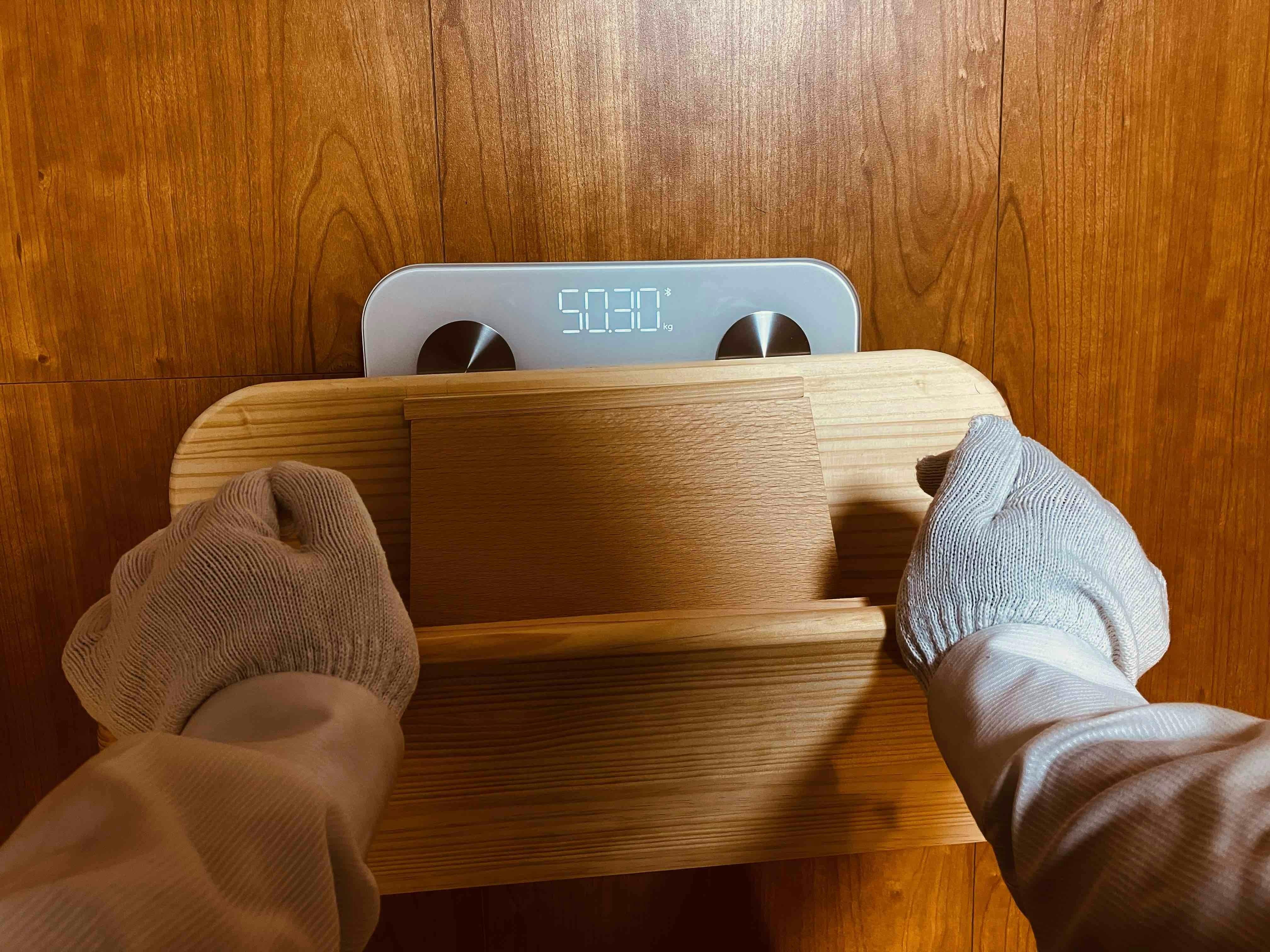 しかし、思ったように揉み玉が肩こりに当たらないのです。 そこで家にあったスノコを斜めに立てかけて使ったところ、揉み玉の問題は解決しました。