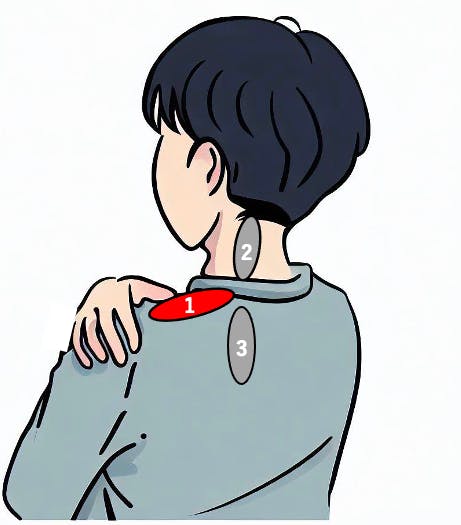 ※肩の部位2,3については、本プロダクトによる効果は確認できていません。(私自身の肩こりが部位1であるため)