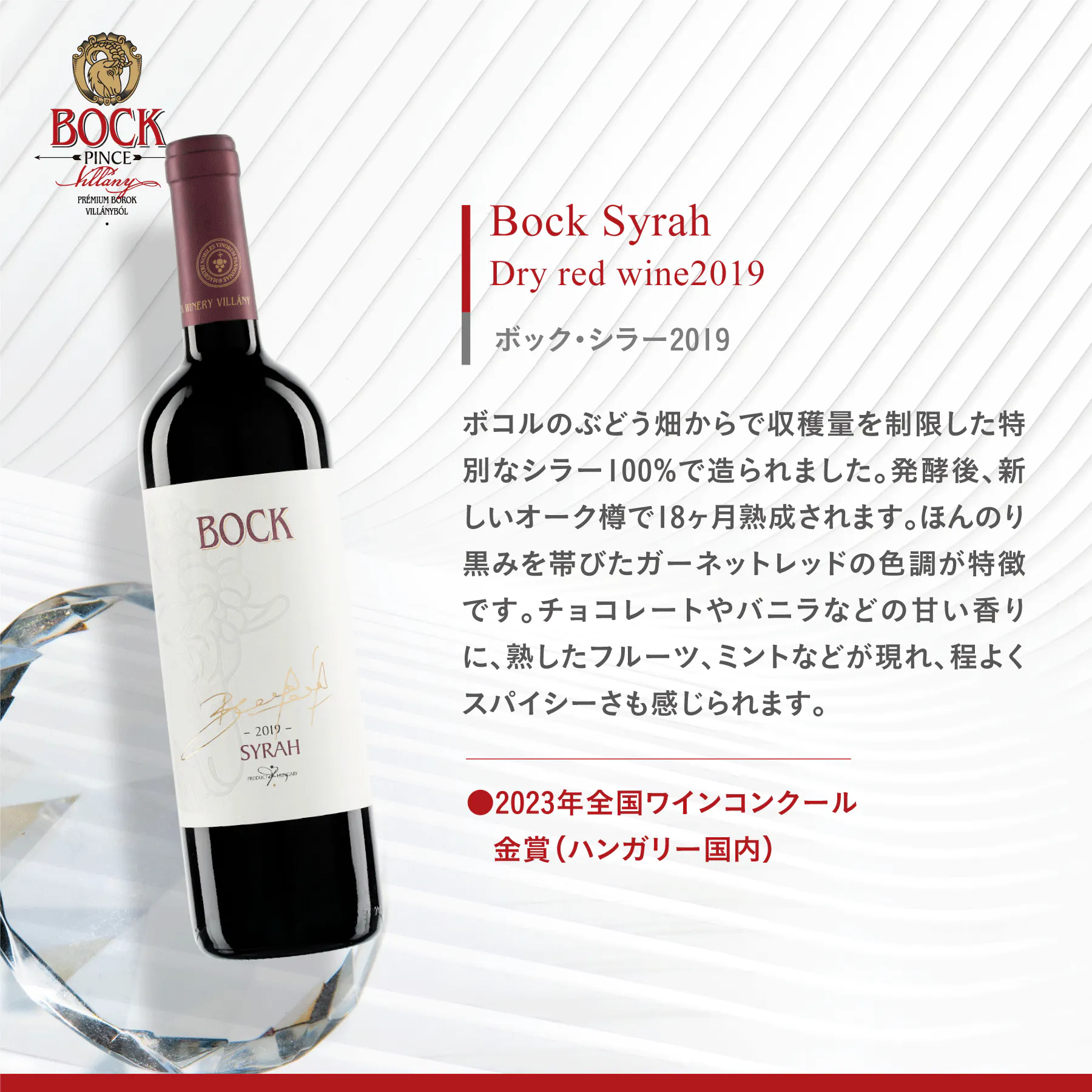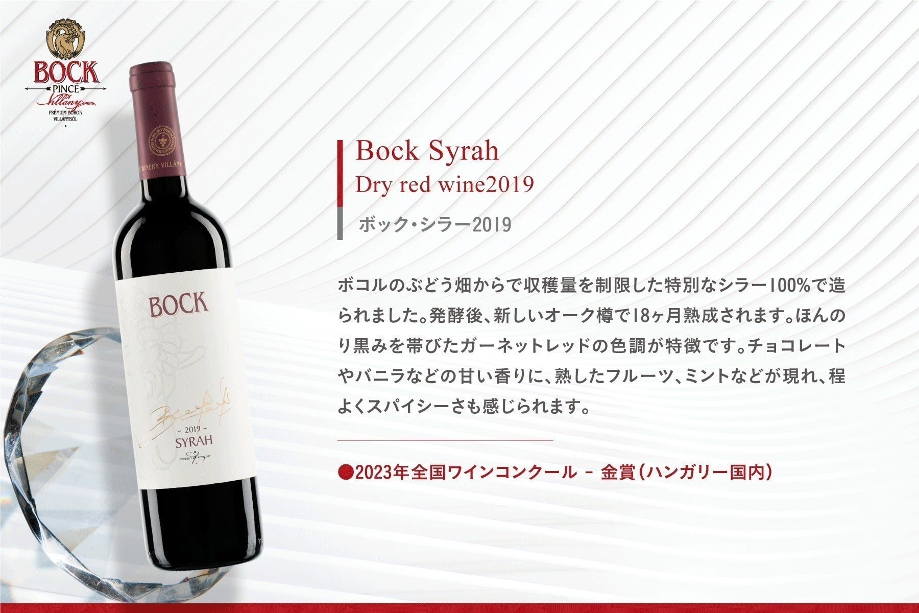 Bock家は、ドイツ系移民で18世紀にヴィラーニ地方に移り住み、1850年からワイン醸造に携わっています。主に、ぶどう畑から厳選されたカベルネ・フラン、メルロー、シラー、ケークフランコシュ、ピノ・ノワール、カベルネ ソーヴィニヨンなどのプレミアムワインで知られています。