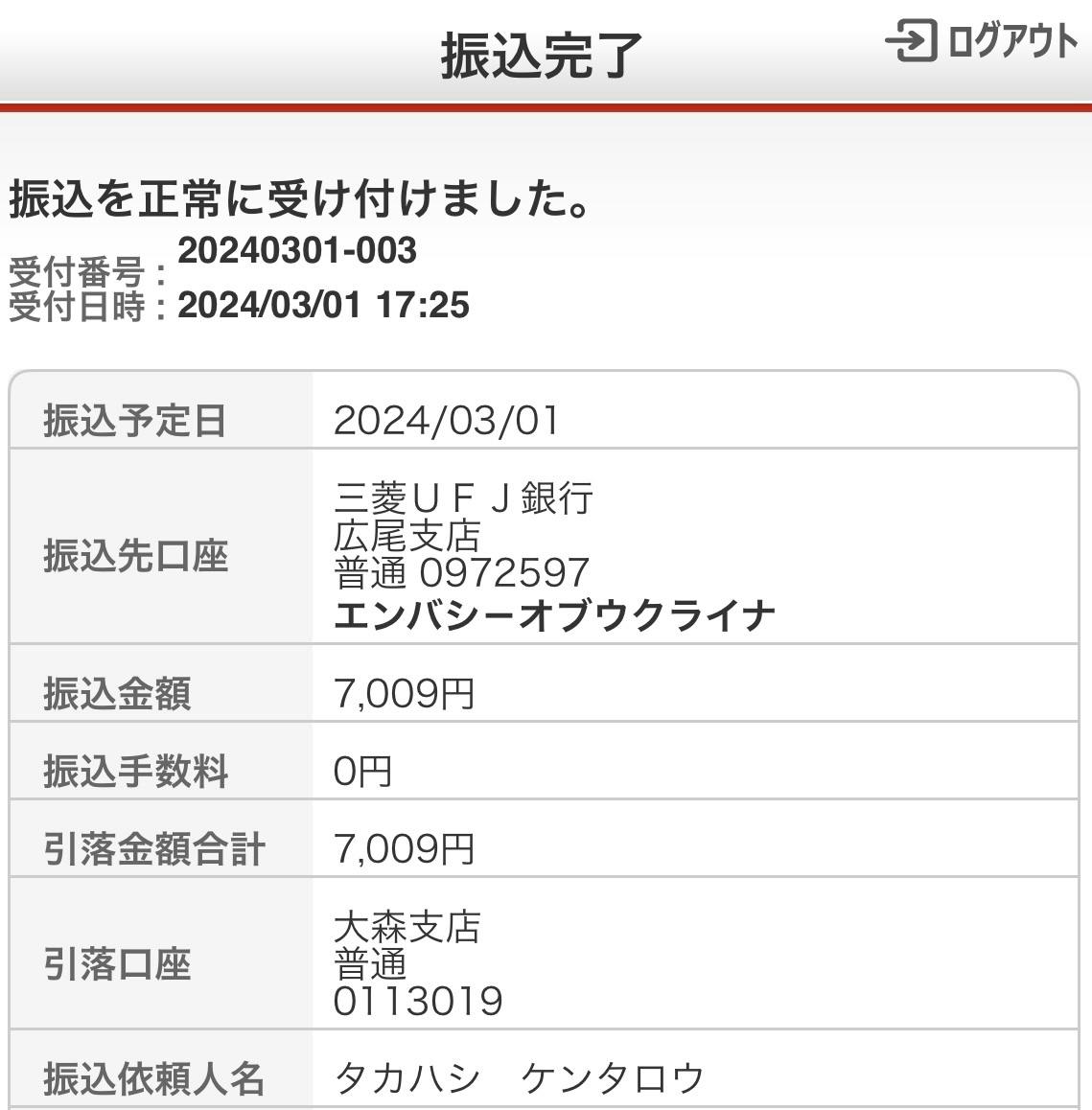 ウクライナ大使館経由での寄付に関して