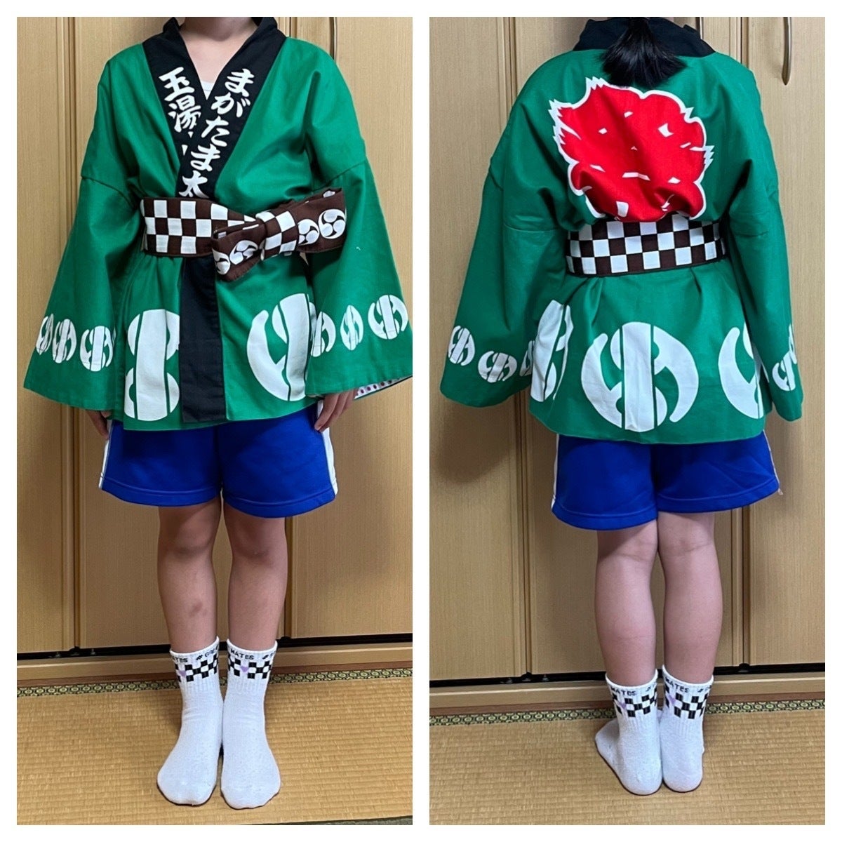 その他の太鼓も出来る範囲で修繕を行いました。次は衣装です。法被は古く色あせていますし、今は存在しない「玉湯小学校」の校名や校章がデザインされています。サイズも大きく、キッズの子どもたちの体には合いません。私の母親にお願いしてサイズ調整を行いましたが、違和感はありました。演奏の機会が増えるたびに「綺麗な法被を着せてあげたいな。」という思いが込み上げてきました。
