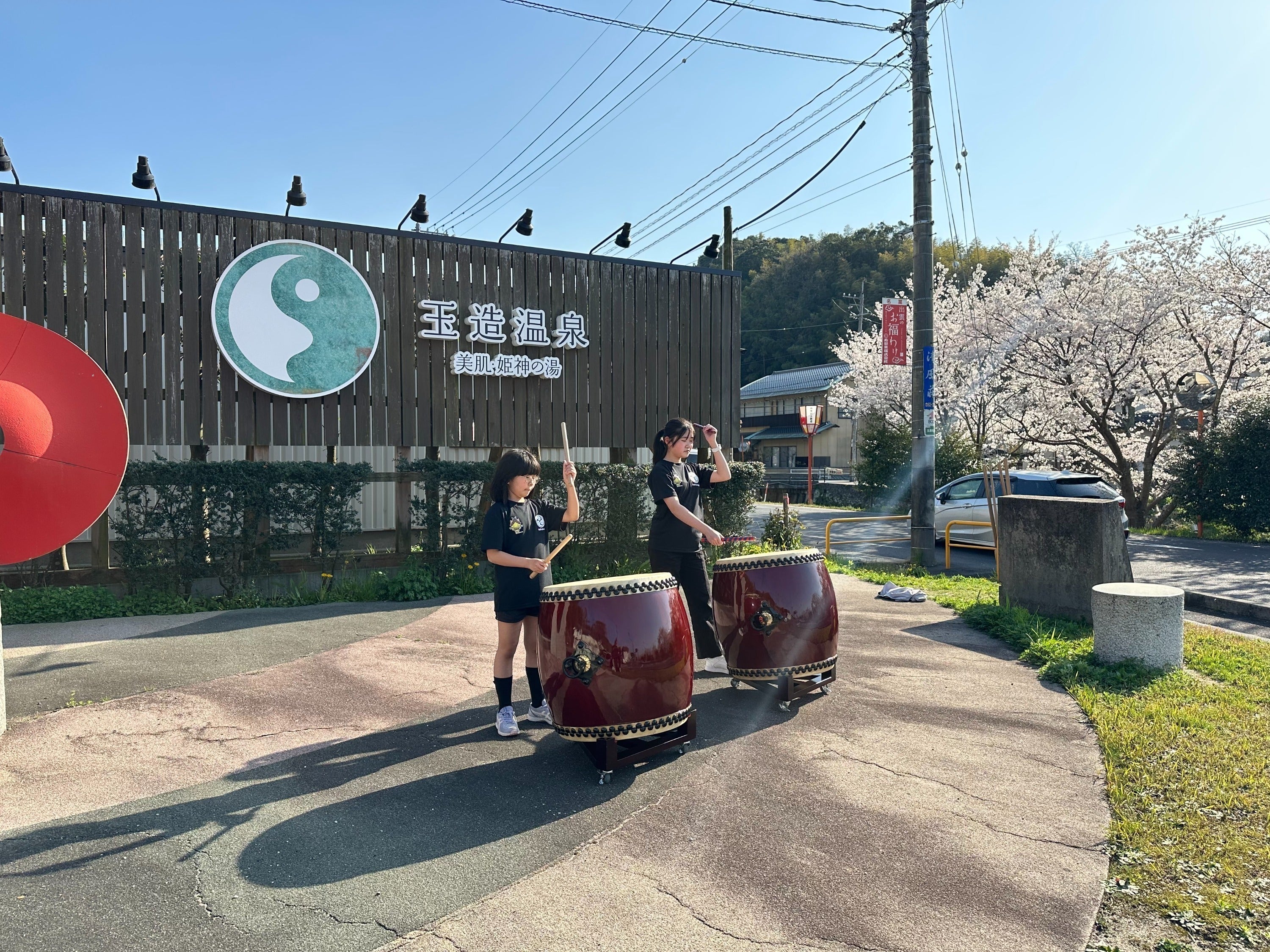 昨年から、地元の玉湯公民館、玉湯学園(小中学校)に協力をお願いしたり、観光協会、松江市の文化振興課の担当者さんとお話をさせて頂く機会を持ってまいりました。今では、地元での演奏機会も増え多くの町民の方に声をかけて頂いております。子どもたちの練習はもちろん、子どもたちの練習終了後に保護者さんに協力を頂いて「大人の太鼓を復活させる!」為の練習を行っています。