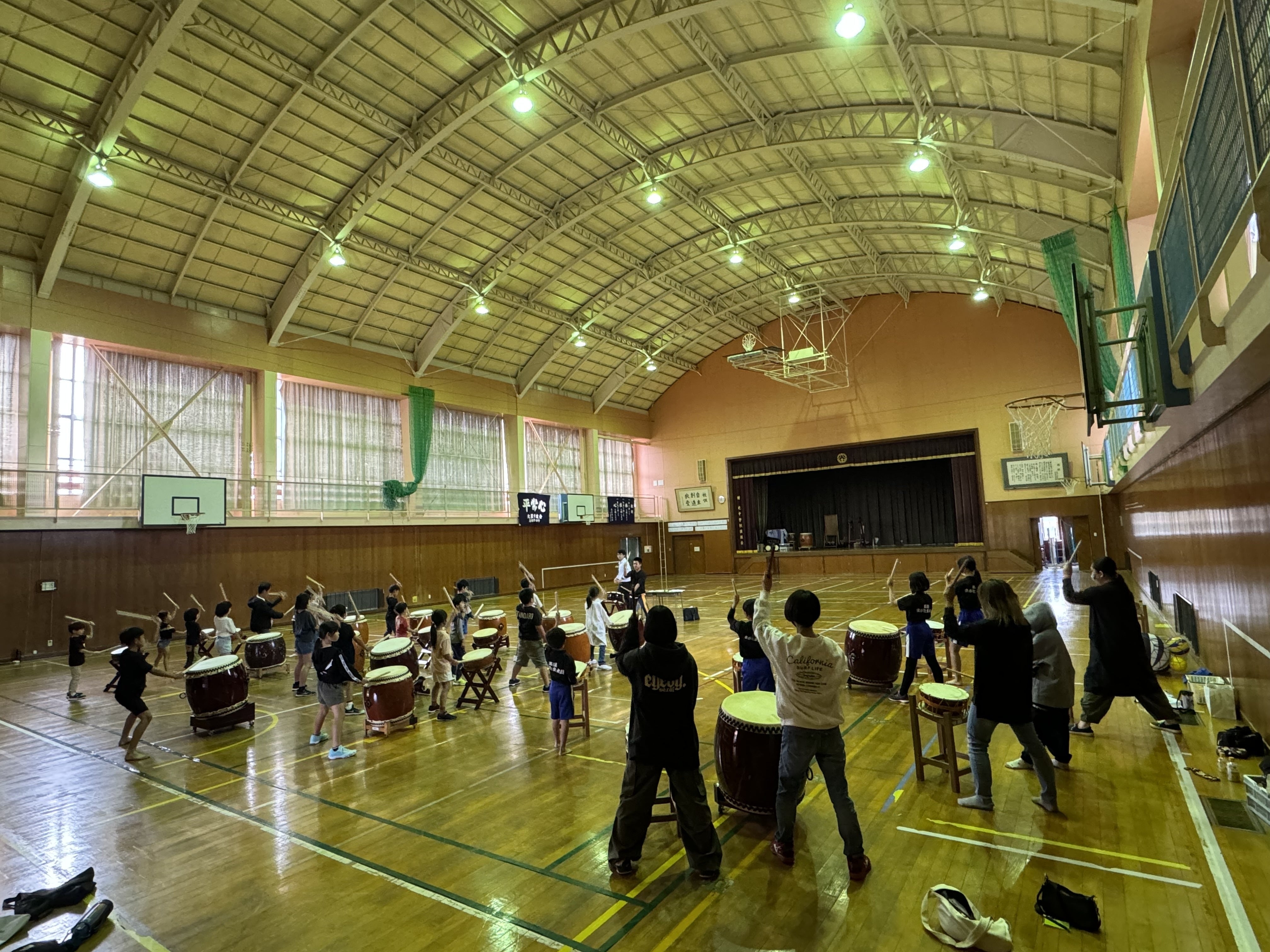 2023/10/29(日)たまゆ文化祭(玉湯公民館)にて、子どもたちの太鼓に加えて大人の太鼓を初披露しました。卒団生の中学生や指導者さん、太鼓未経験の保護者さんも加わって練習を重ねて来ました。初めての演奏で緊張もありましたが、無事に叩き終えてホッとしております。これから益々、努力し楽しく太鼓を叩いて行きたいと思います。