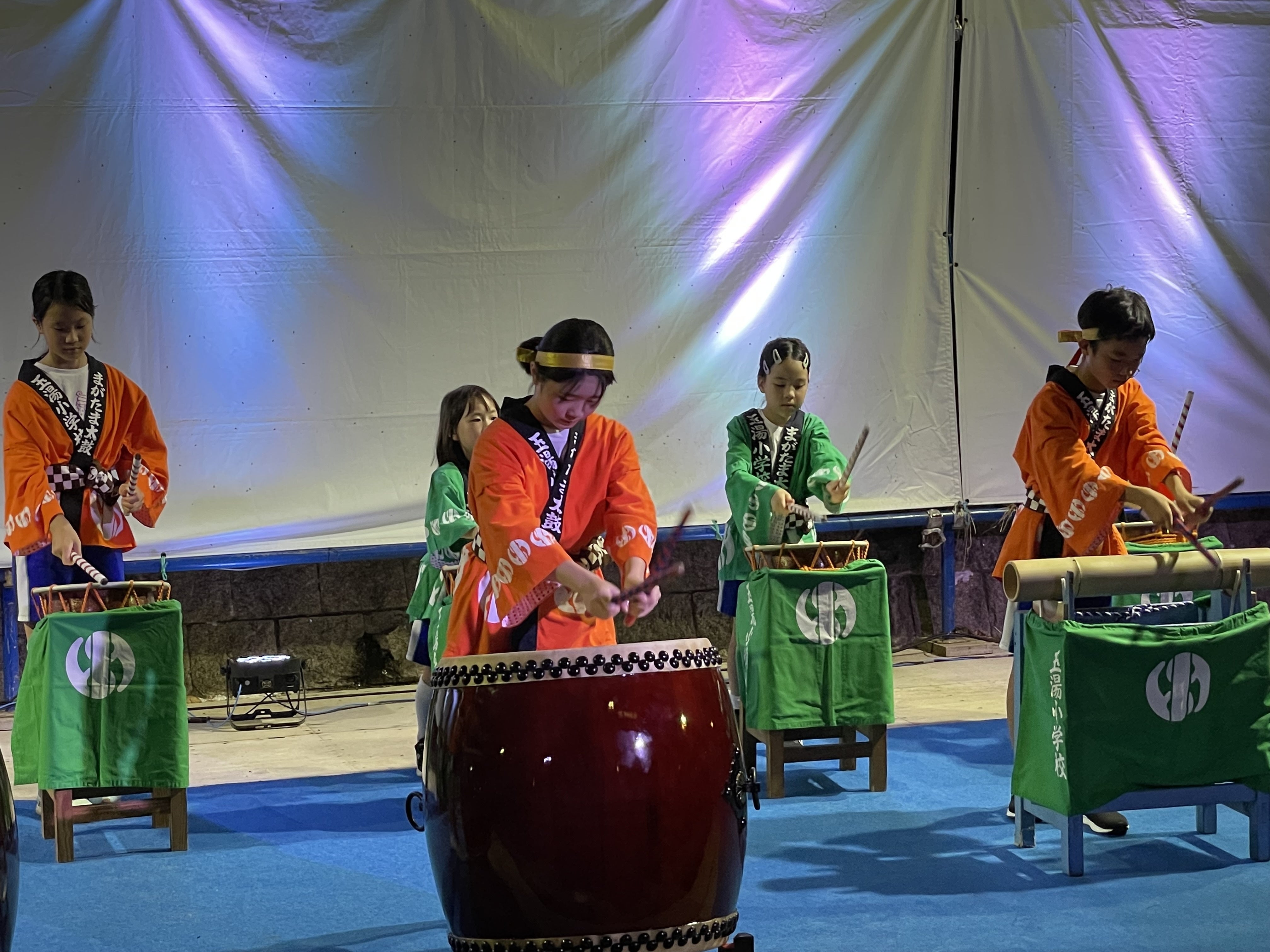 「まがたま太鼓キッズ」の子どもたちが増えると、その兄弟(姉妹)さんが興味を持ち、上級生のメンバーも増えはじめました。「よし!これなら演奏できる!」と地元の玉造温泉の夏祭りタマステージ2022への出演を申し込みました。