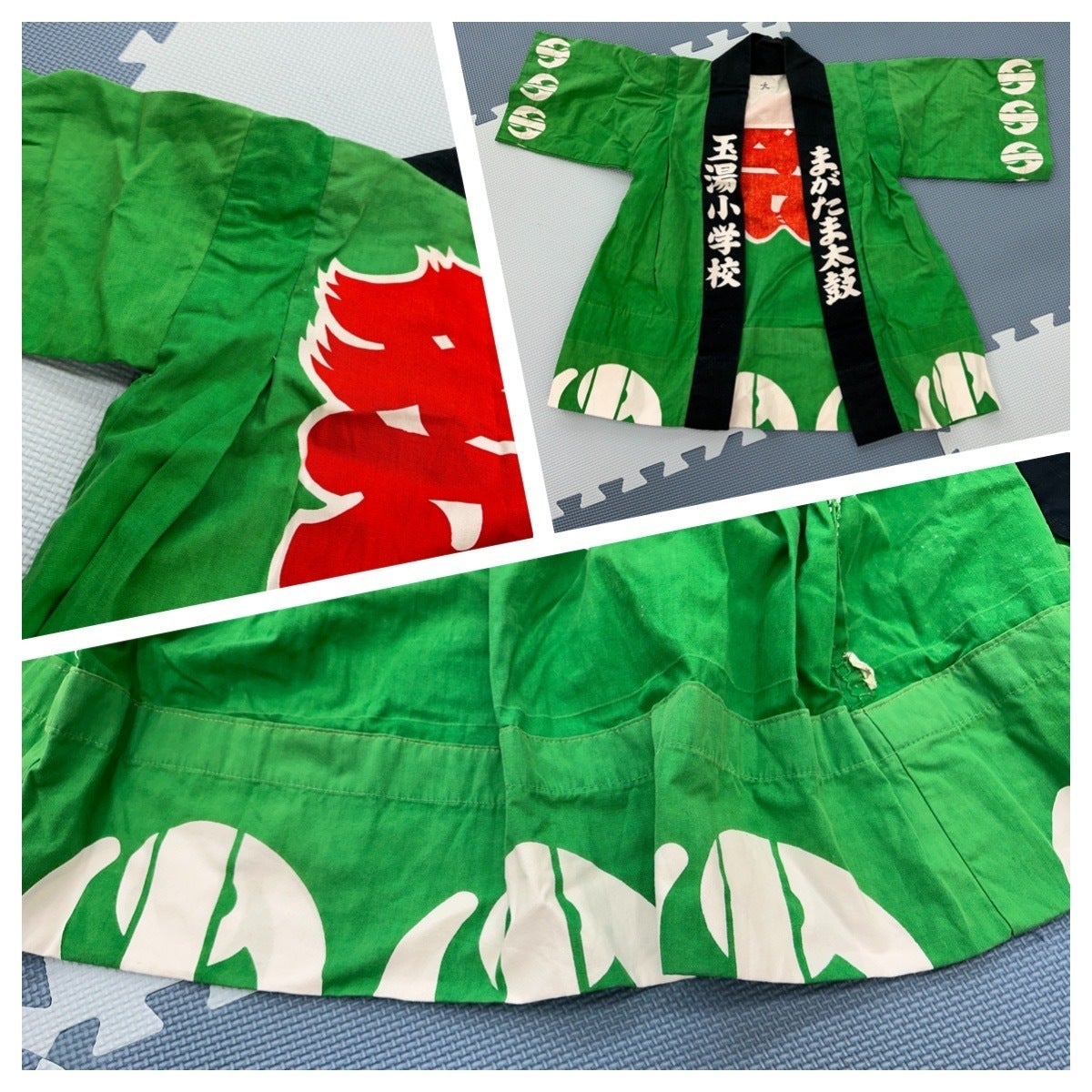 その他の太鼓も出来る範囲で修繕を行いました。次は衣装です。法被は古く色あせていますし、今は存在しない「玉湯小学校」の校名や校章がデザインされています。サイズも大きく、キッズの子どもたちの体には合いません。私の母親にお願いしてサイズ調整を行いましたが、違和感はありました。演奏の機会が増えるたびに「綺麗な法被を着せてあげたいな。」という思いが込み上げてきました。