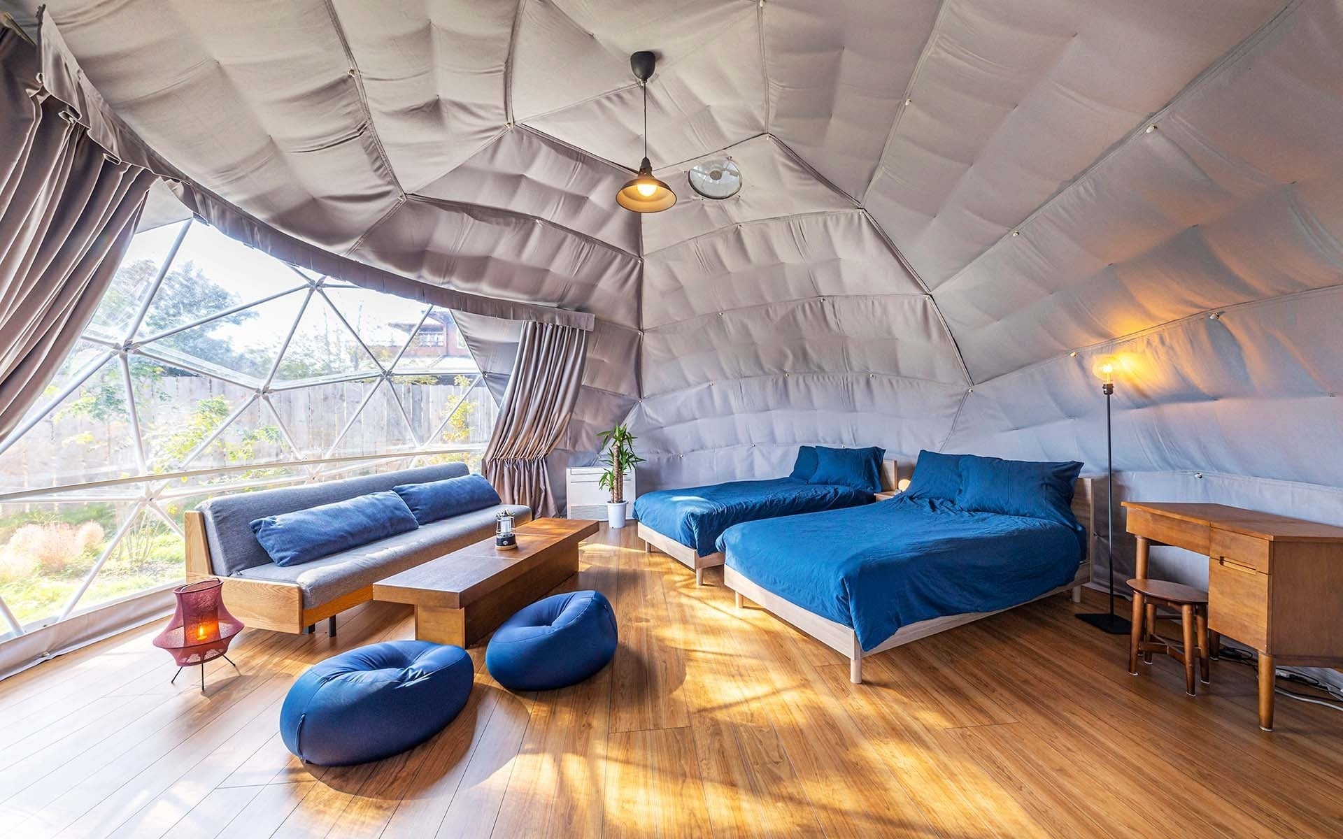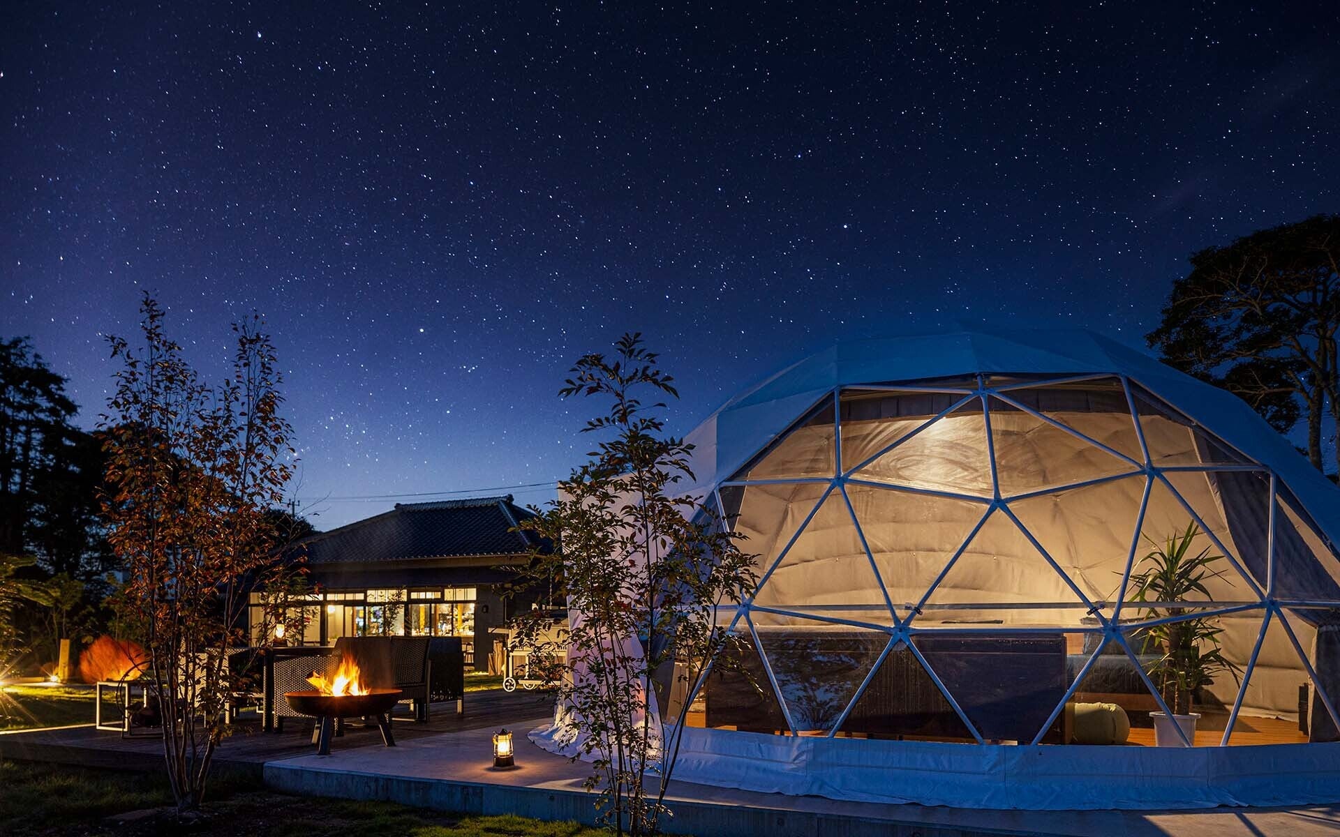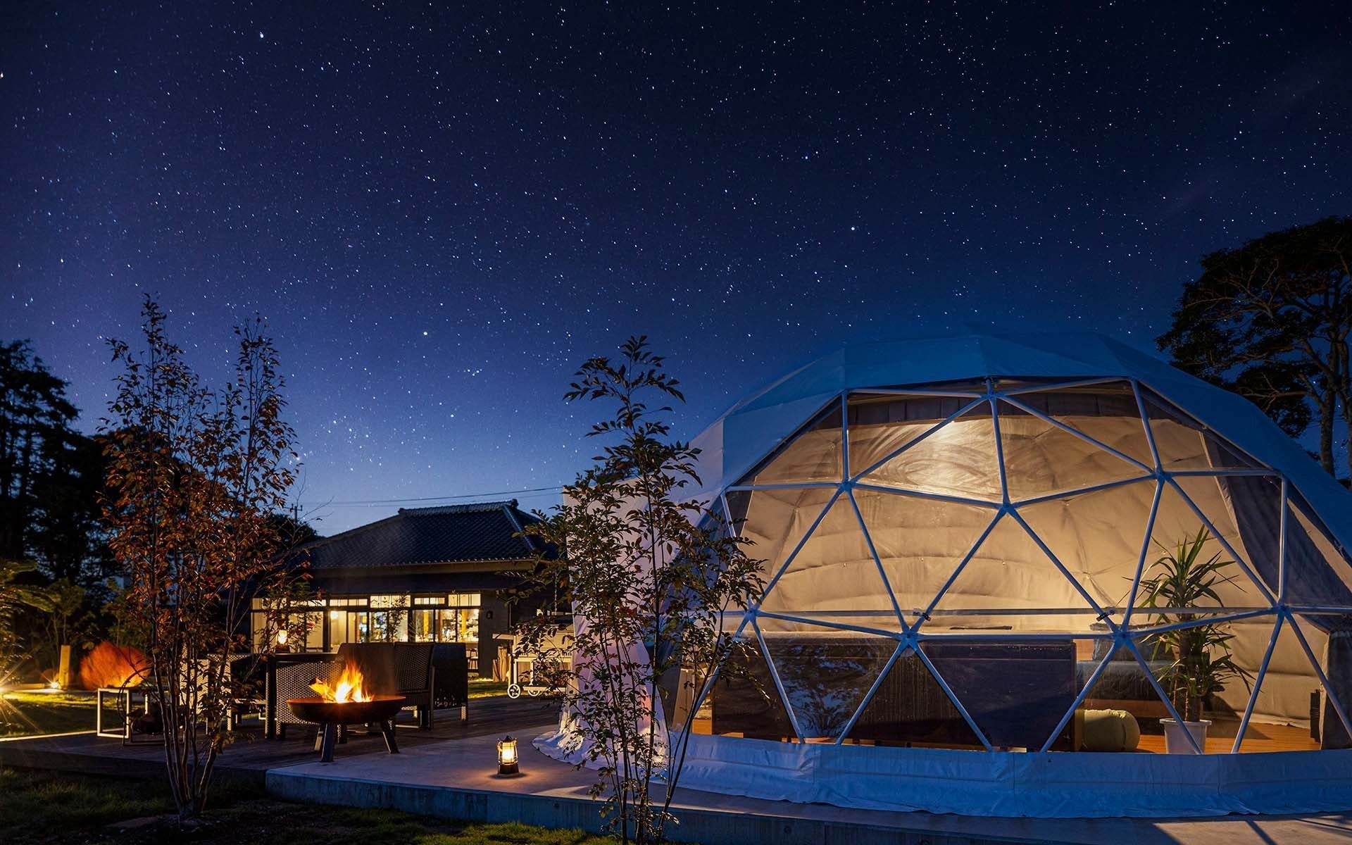 1日2組限定の大型ドームテントは冷暖房完備でアウトドア初心者の方でも気軽にお過ごしいただけます。