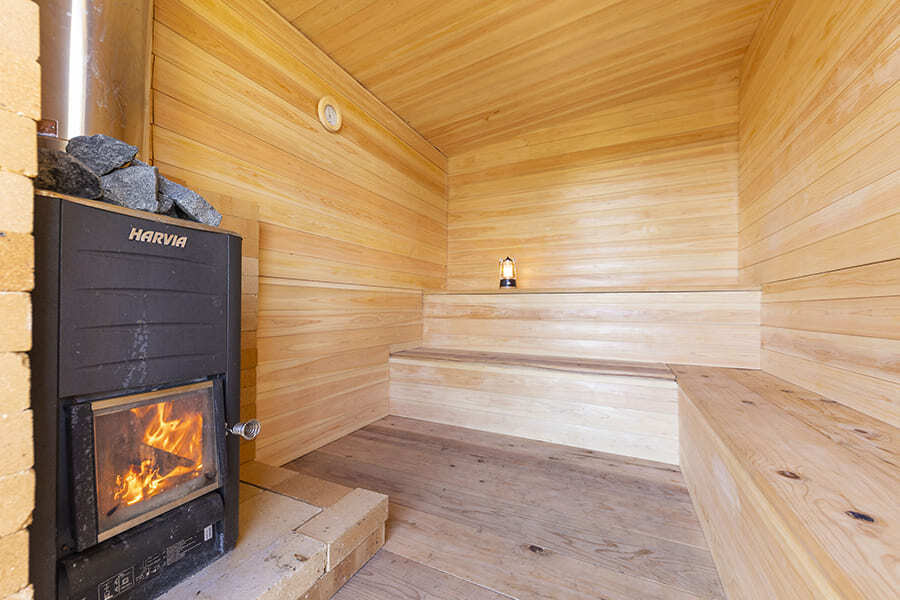 サウナ内で聞こえるのは、[薪がパチパチ鳴る音]と[鳥のさえずり] のみ。