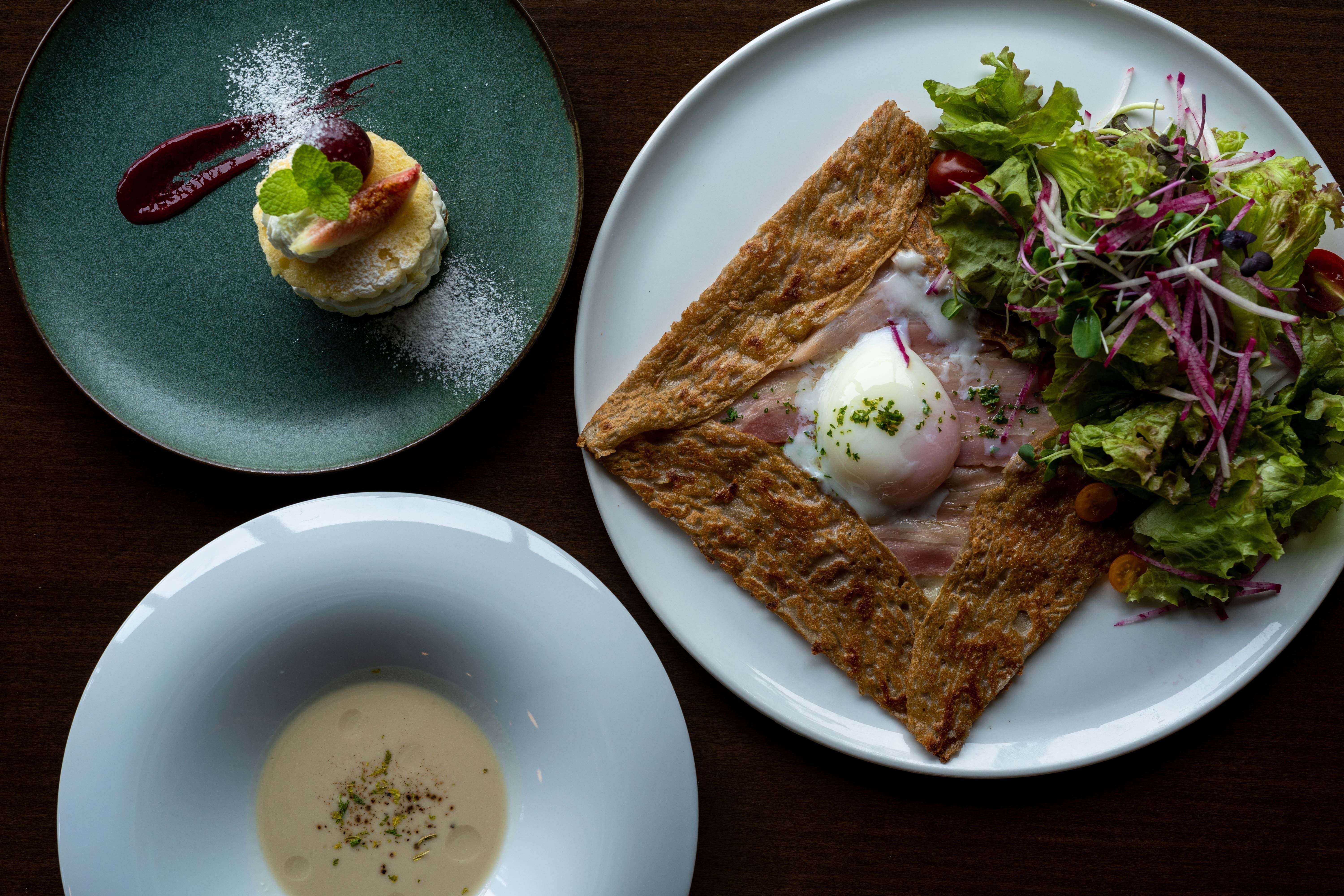 ランチコース(ご予約必要)とパスタ、ガレットそして大人気のハンバーガーをご提供しております。